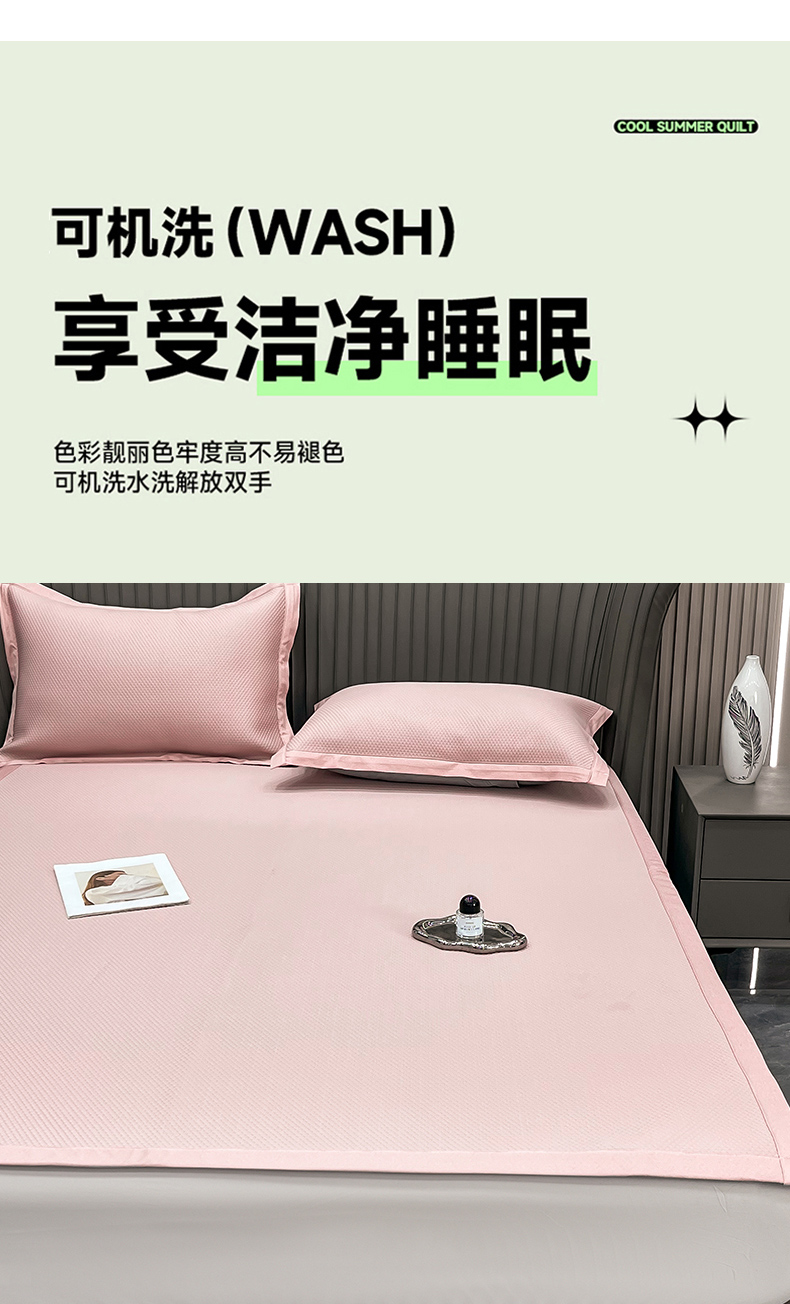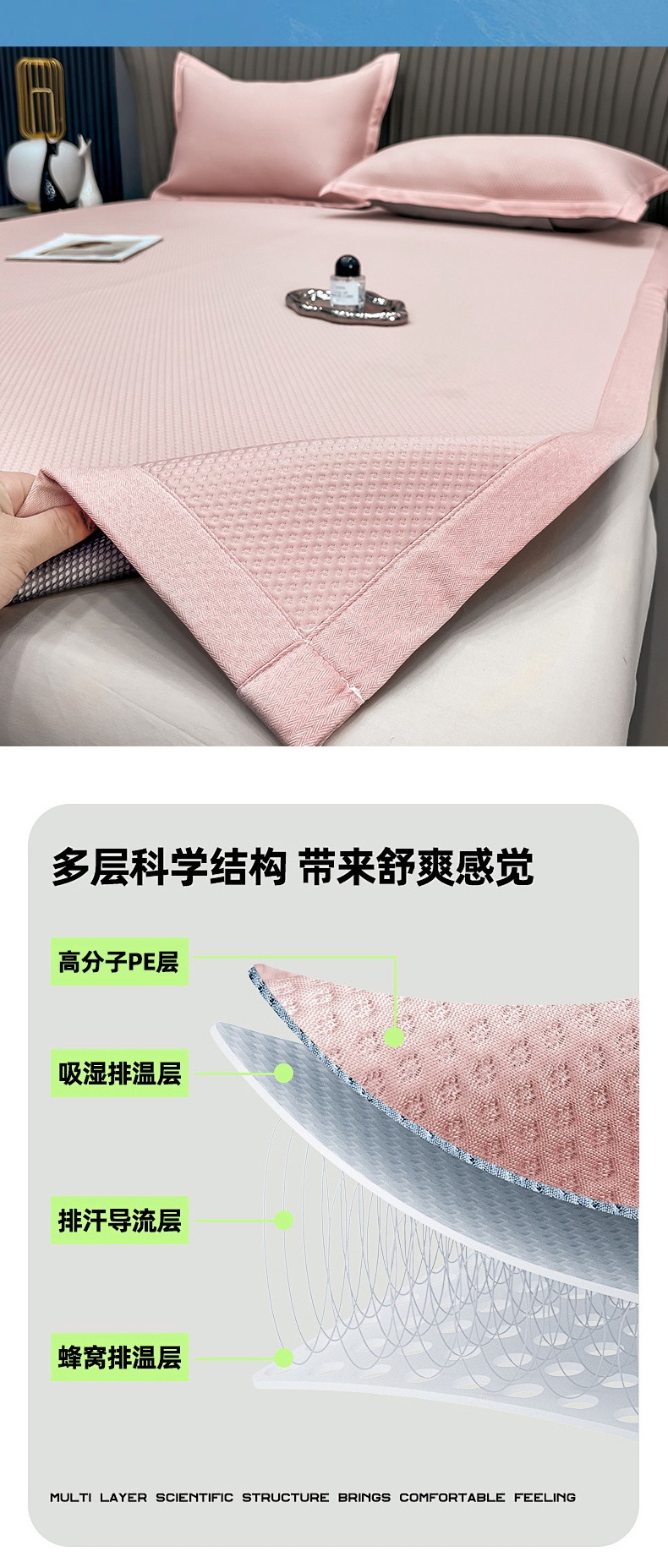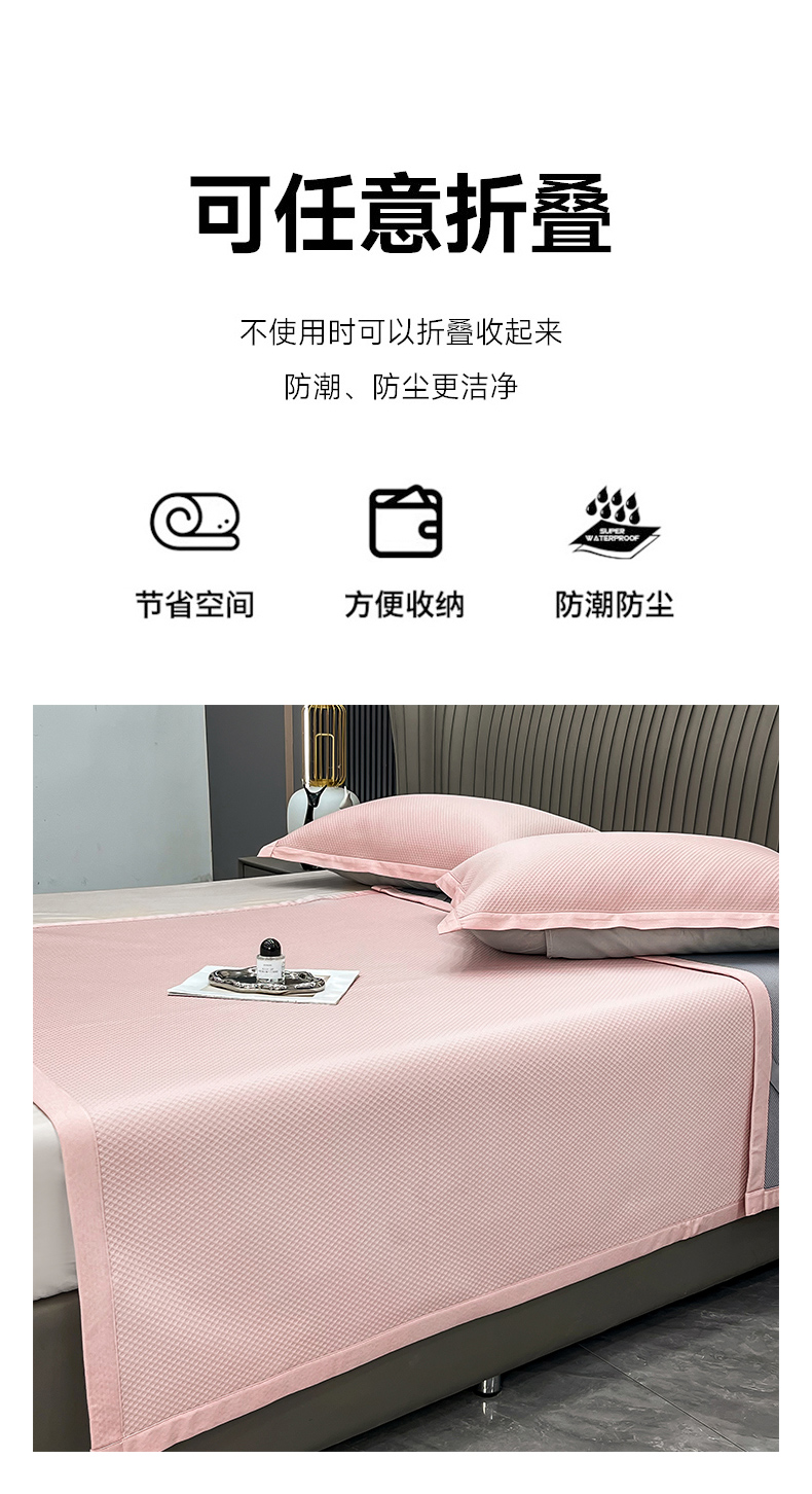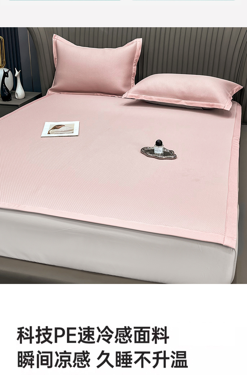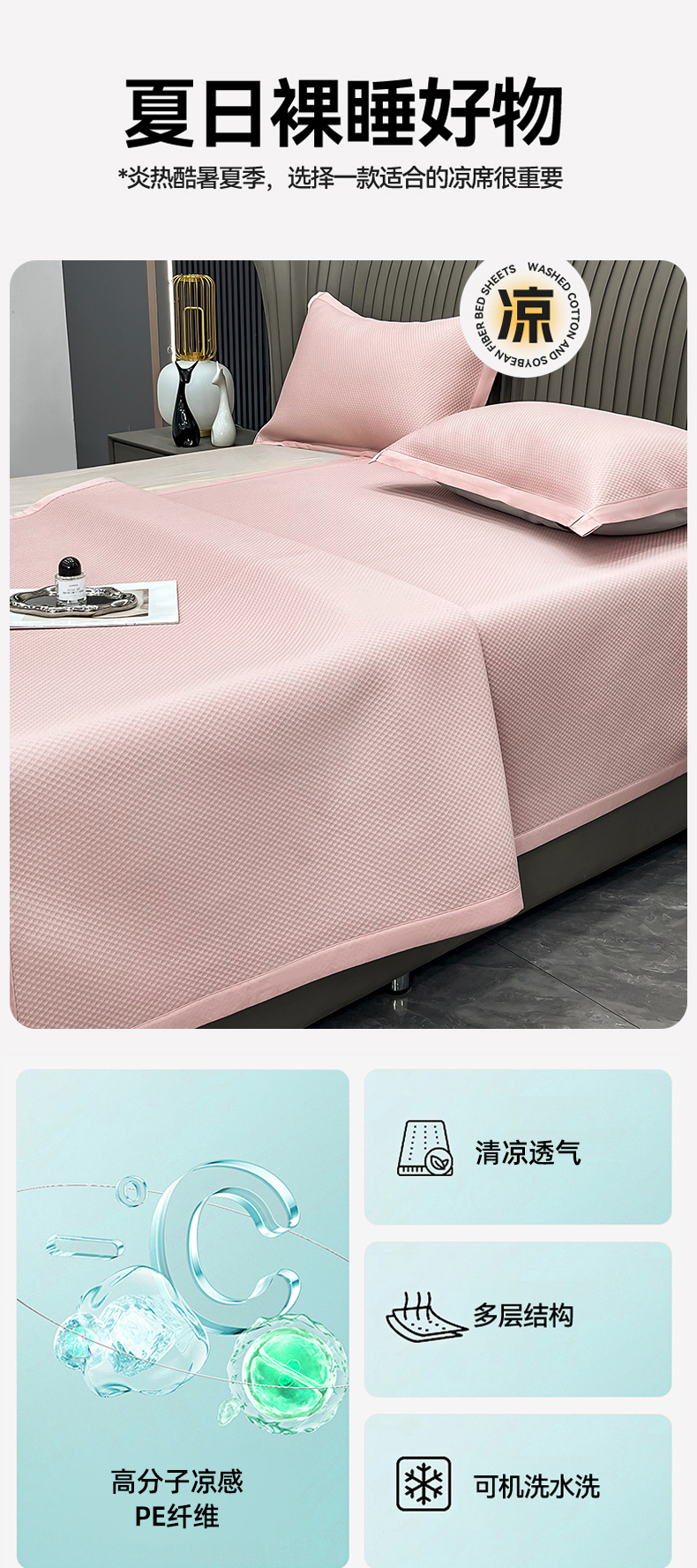商品名称:瑞兴纺 2025新款高分子PE软凉席绣花款床单款 床单款-华夫格-粉