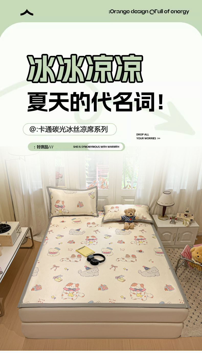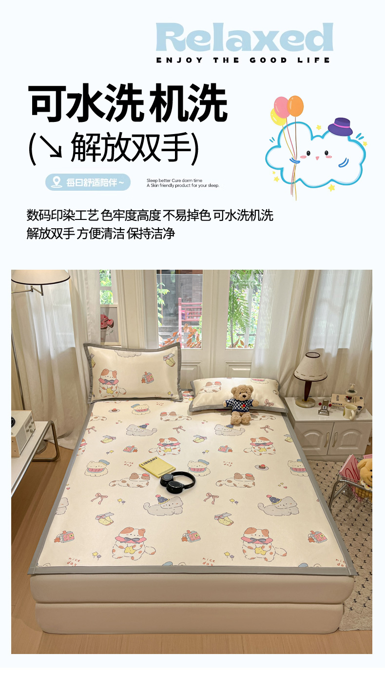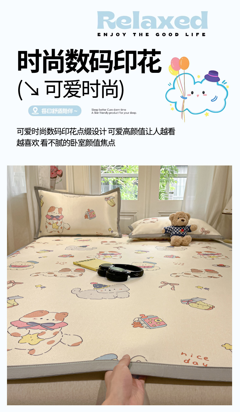 商品名称:慕澄家纺 2025新款小清新萌宠系列碳光冰丝凉席 猫猫礼物