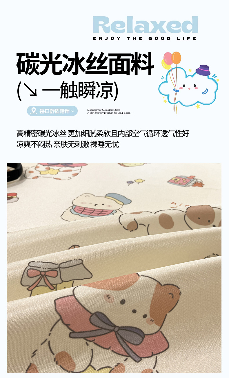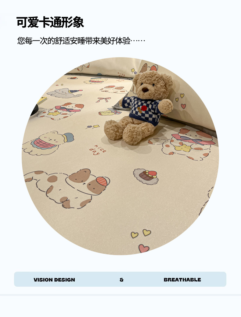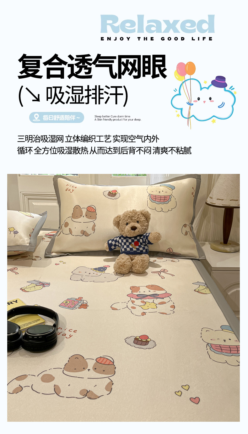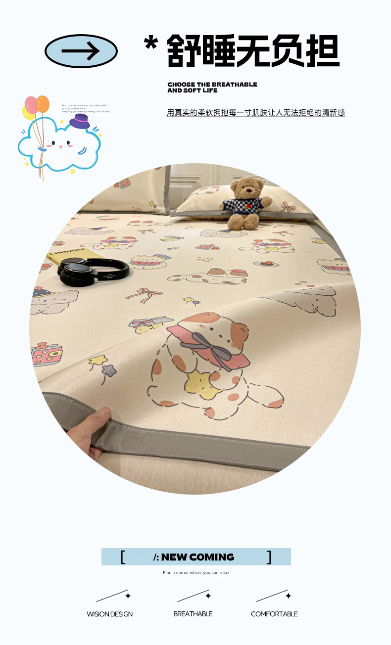 商品名称:慕澄家纺 2025新款小清新萌宠系列碳光冰丝凉席 猫猫礼物