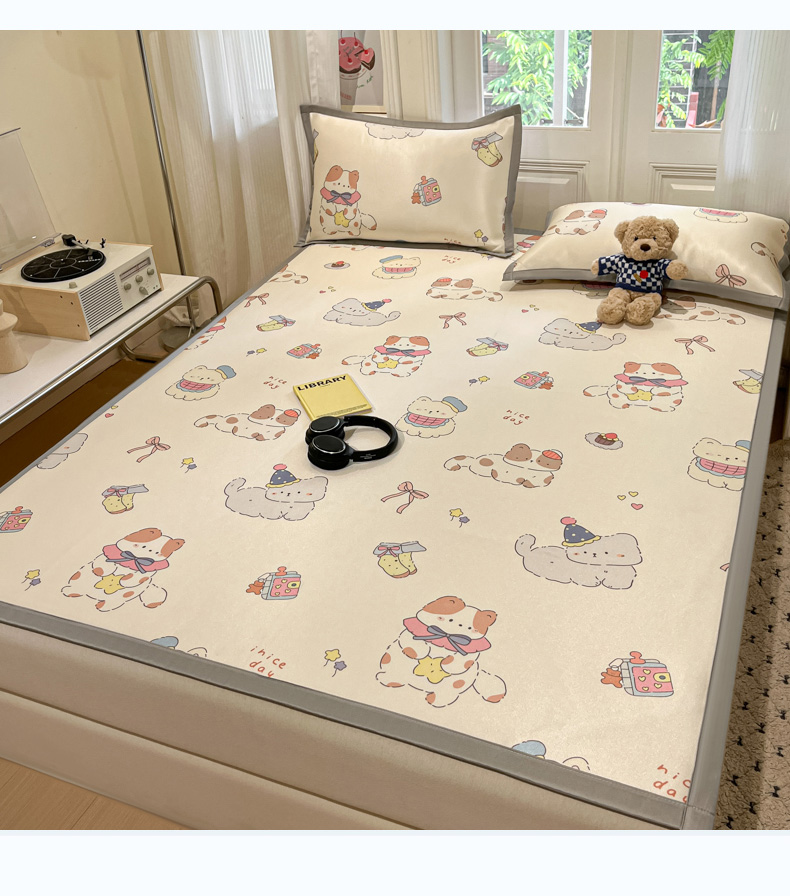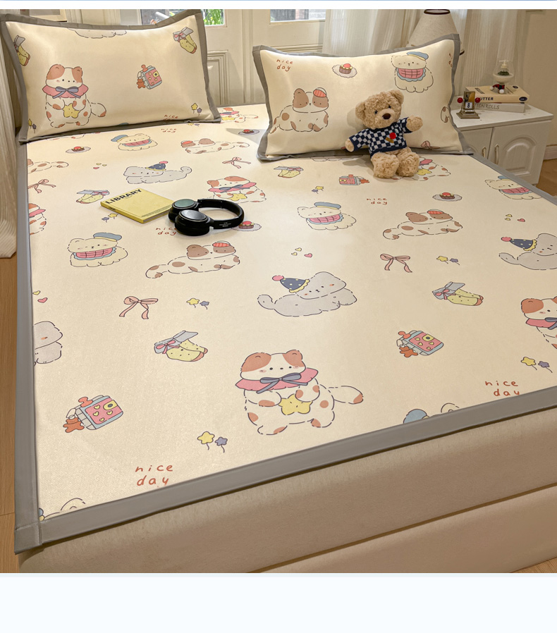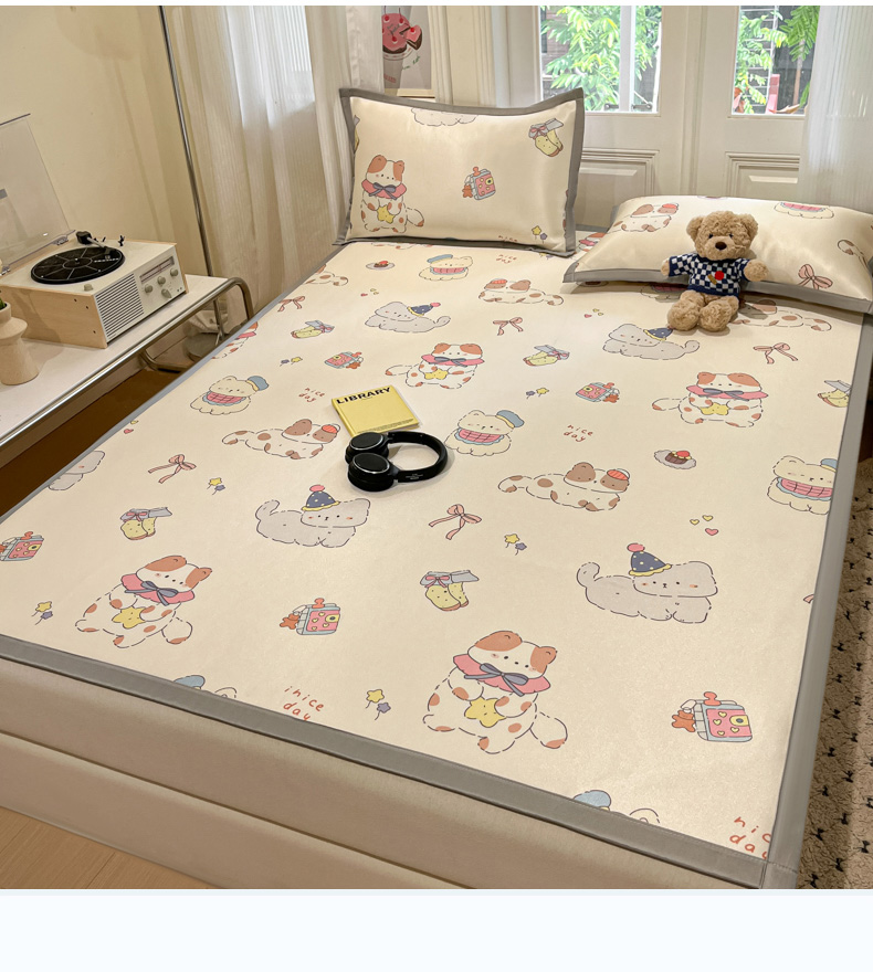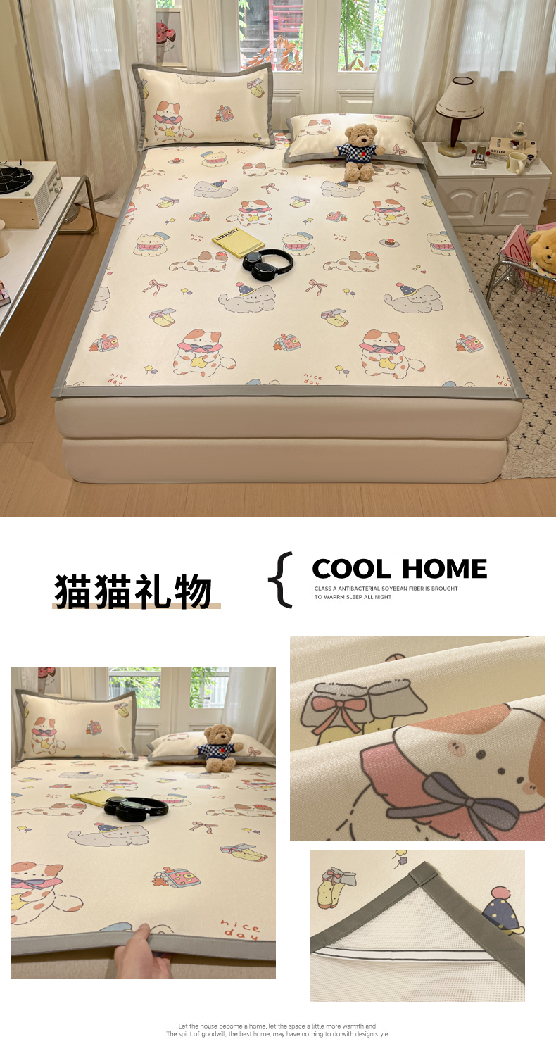 慕澄家纺 2025新款小清新萌宠系列碳光冰丝凉席 猫猫礼物