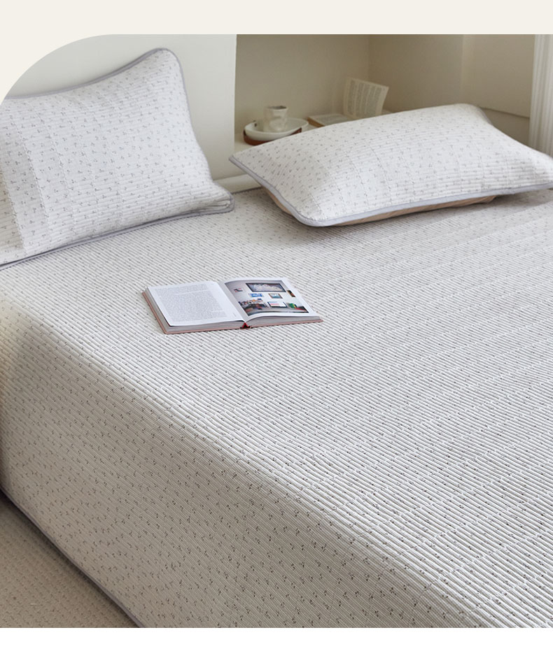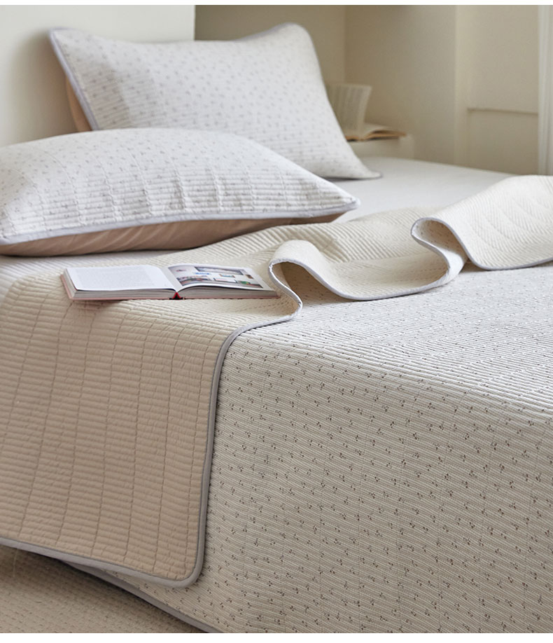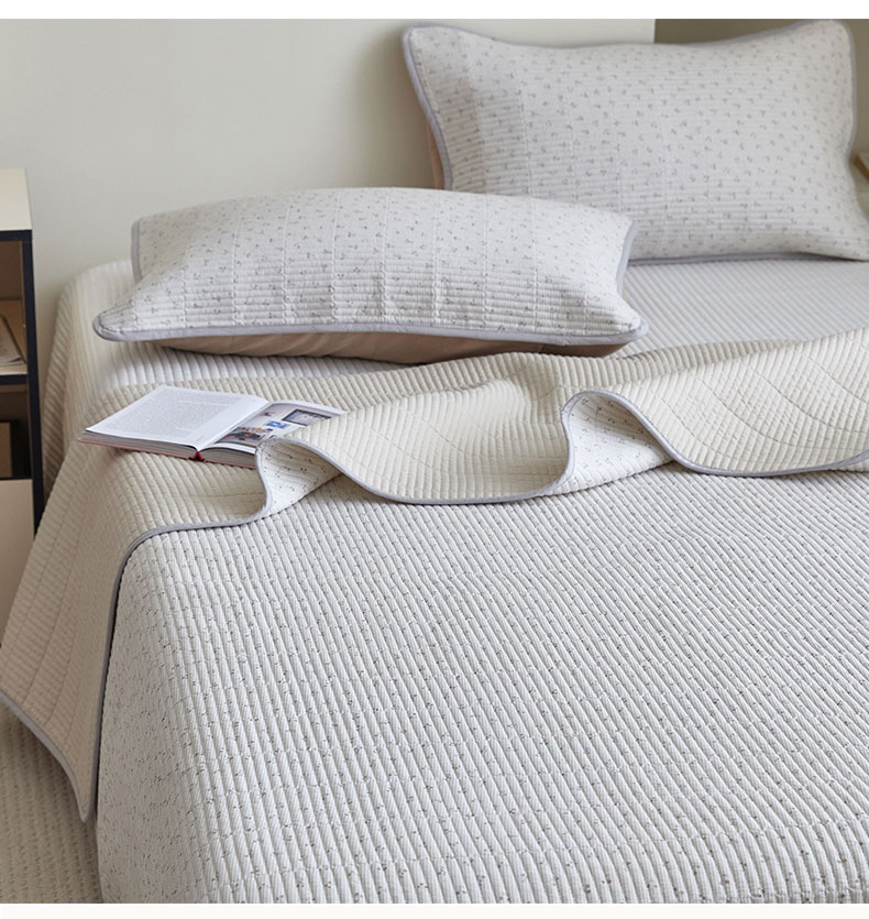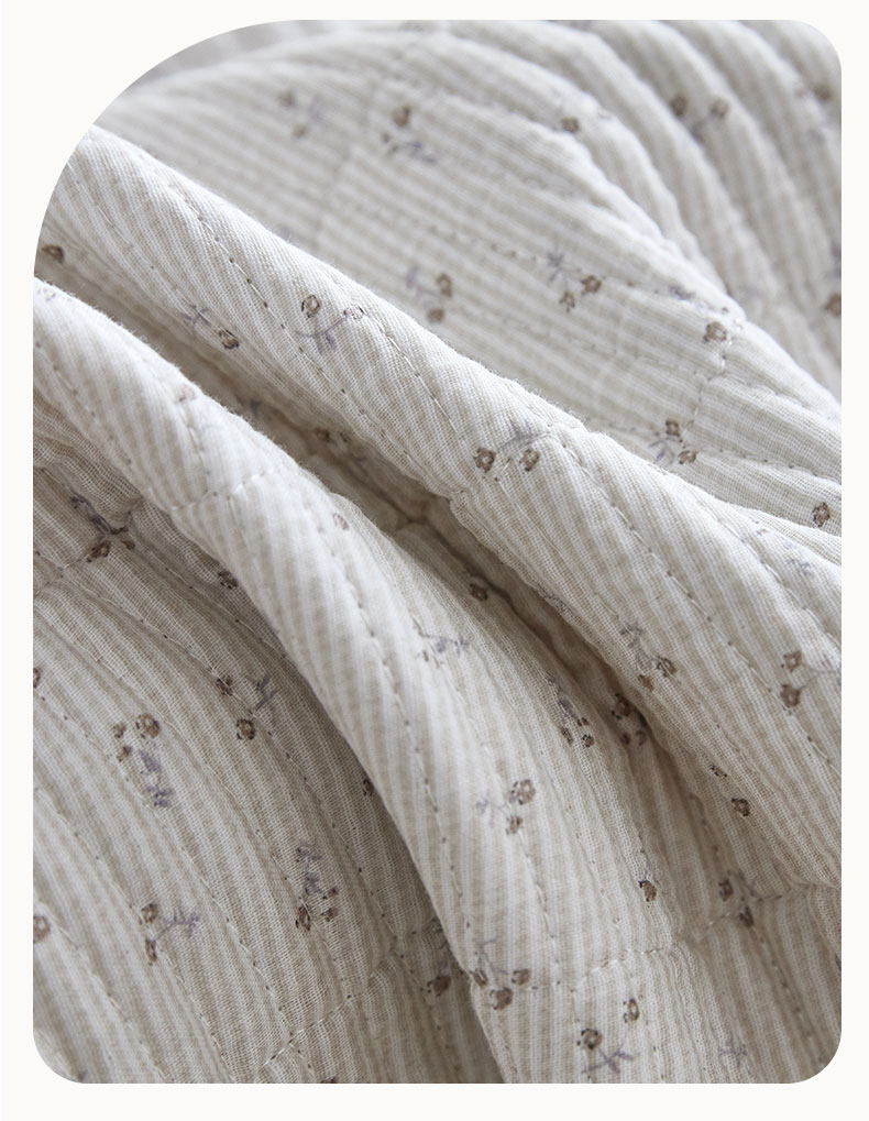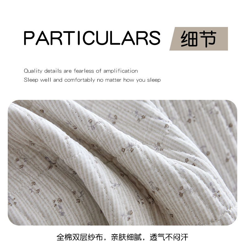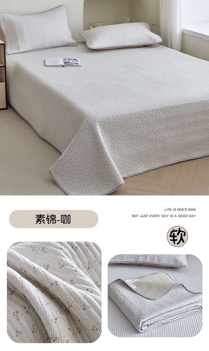 商品名称:亿梵家居 2025新款全棉纯棉双层纱床盖三件套A类母婴级纯棉床盖炕盖夹棉床单 素锦-咖