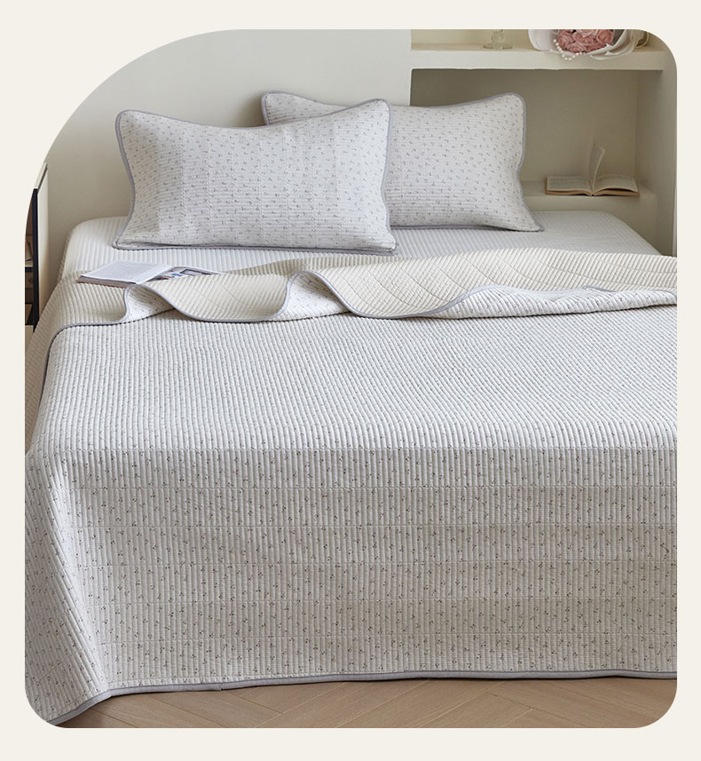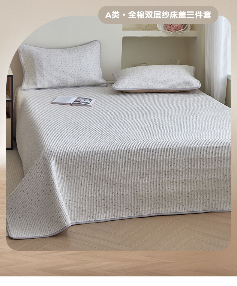 (总)亿梵家居 2025新款全棉纯棉双层纱床盖三件套A类母婴级纯棉床盖炕盖夹棉床单,韩系小熊-蓝,卡通乐园-米,梅林春晓,素锦-咖,云溪之镜-紫,卓言-灰
