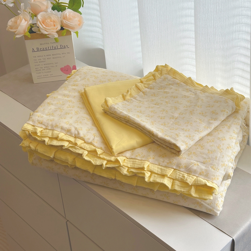 当前位置: 91家纺网 > 商品网购 > 床品套件 > 四件套 > 夏被四件套 > 黛馨 2025春夏新款全棉纯棉A类双层纱工艺款夏被夏凉被空调被四件套皱皱边款 晴天