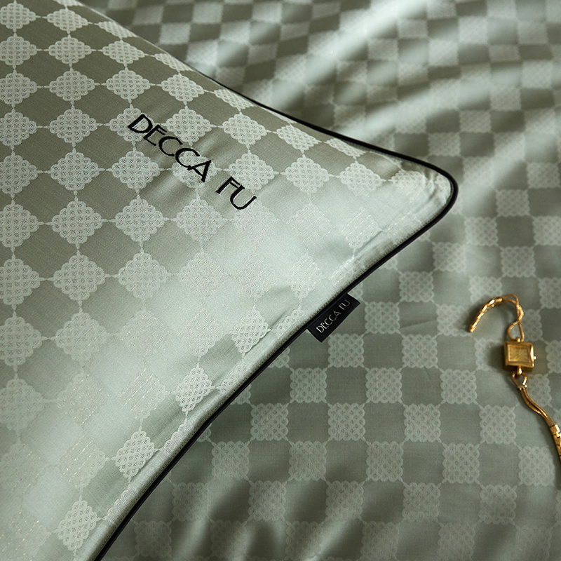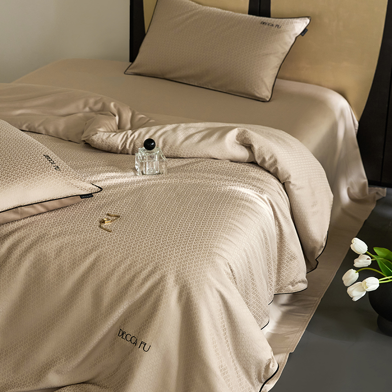 群鹿蚕丝羽绒馆 2025新款天丝棉提花银线刺绣嵌条麻绳工艺-铂金简奢款四件套 夏陌-冰雨蓝