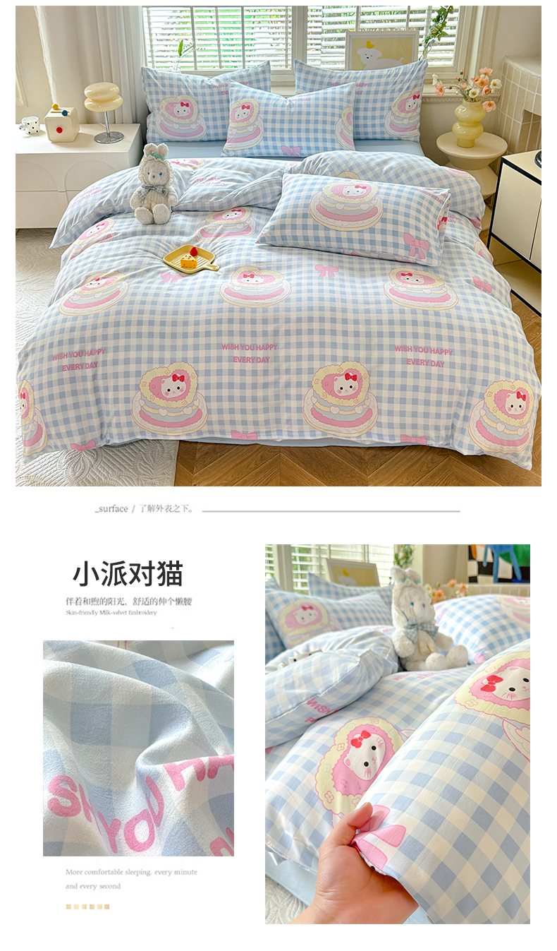 • 91家纺网 家纺一手货源 找家纺 多品家纺 2025新款超柔云感水洗棉学生单被套款 小派对猫