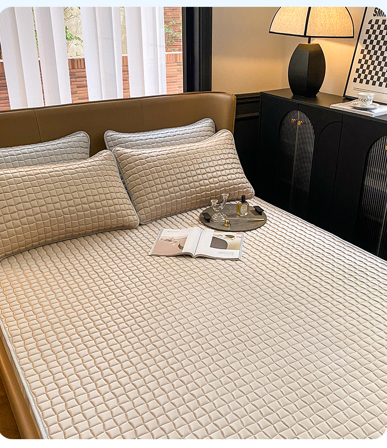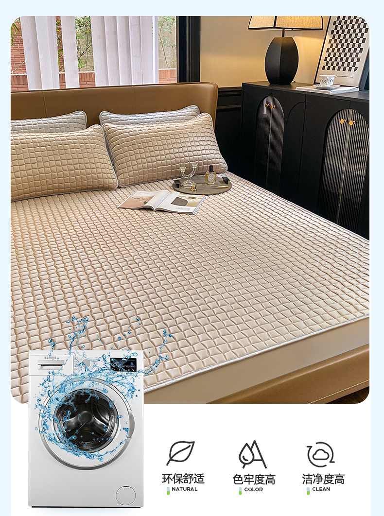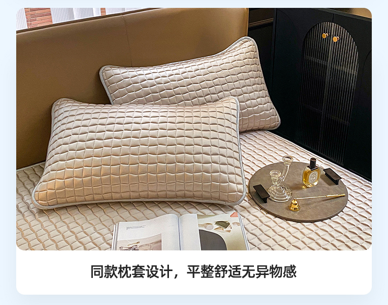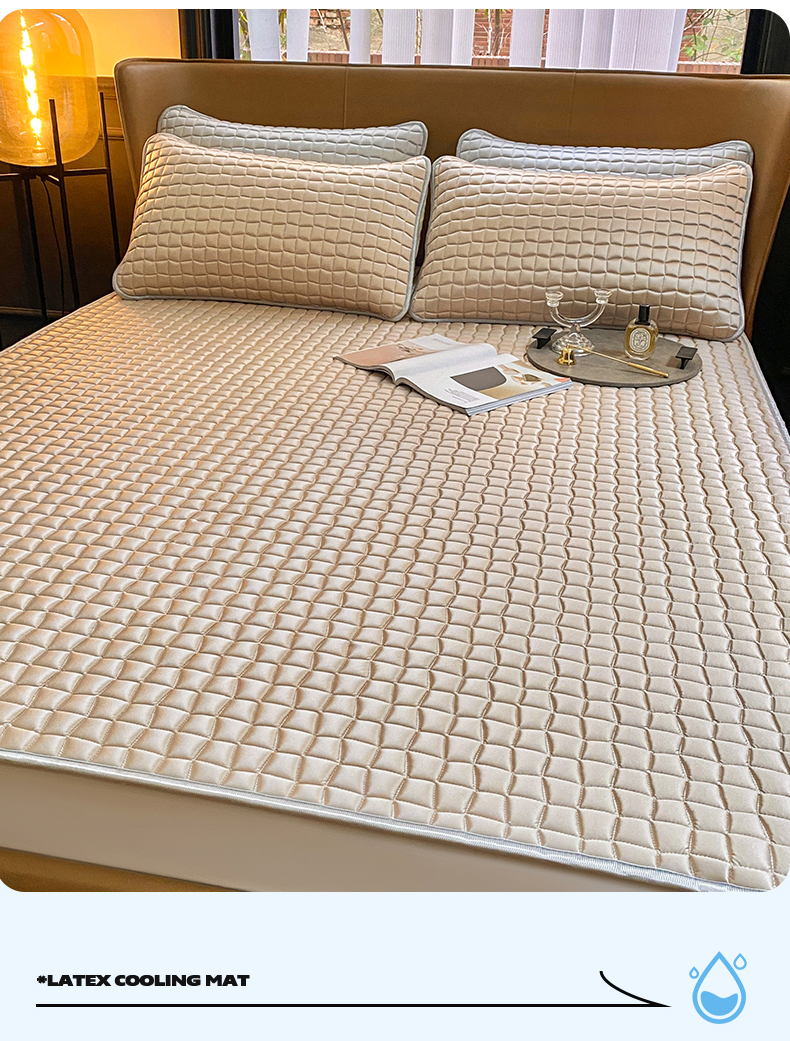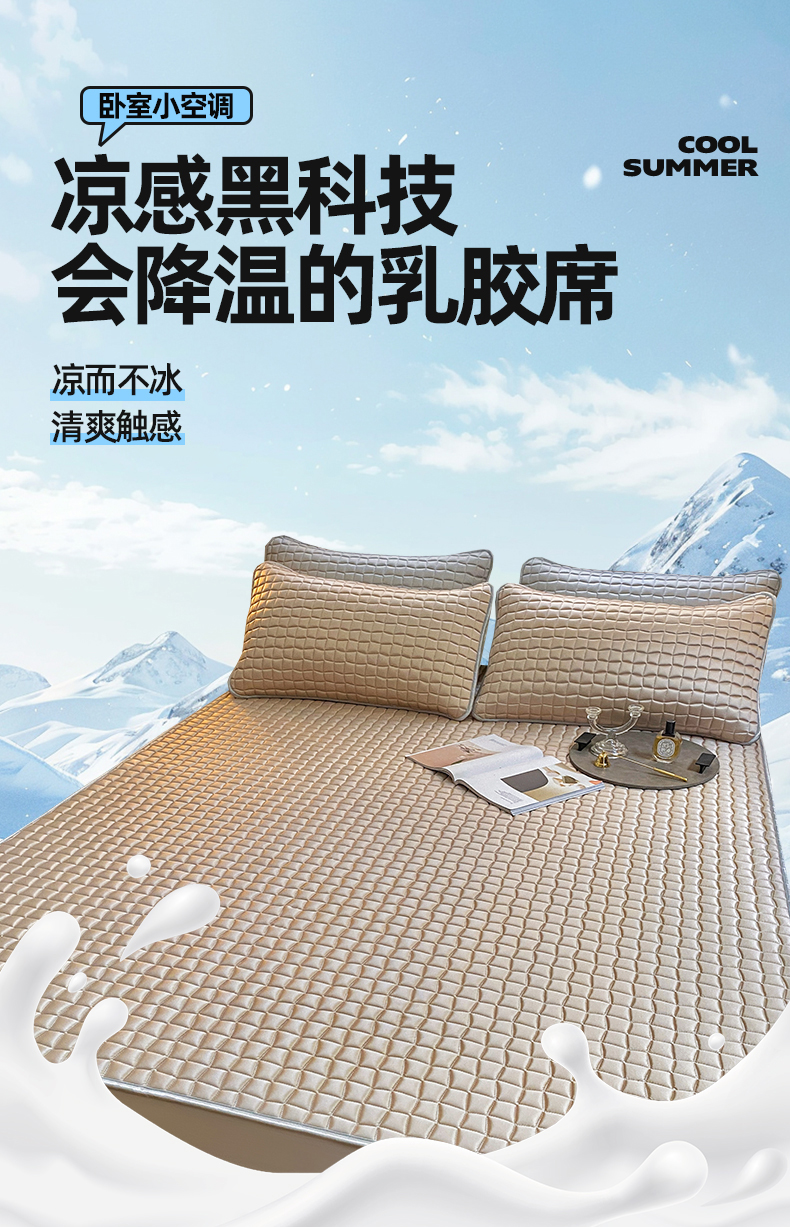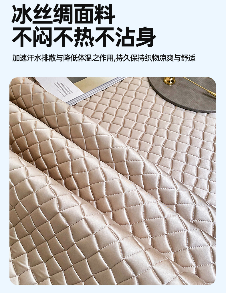 (总)罗优家纺 2025新款水光美 肤冰块凉席,蜜豆粉,浅银灰,香槟金