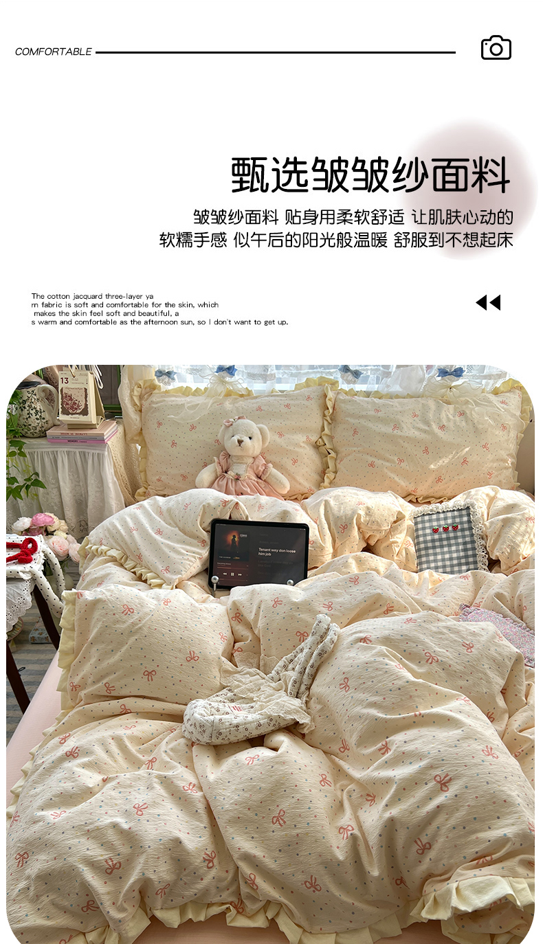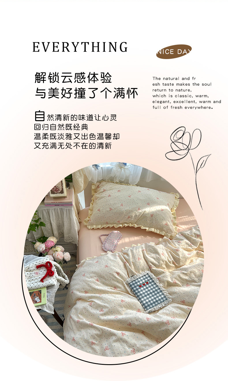 当前位置: 91家纺网 > 商品网购 > 床品套件 > 四件套 > 其它四件套 > 原素 2025少女心云感双层纱皱皱边花卉四件套 曼塔-奶黄边