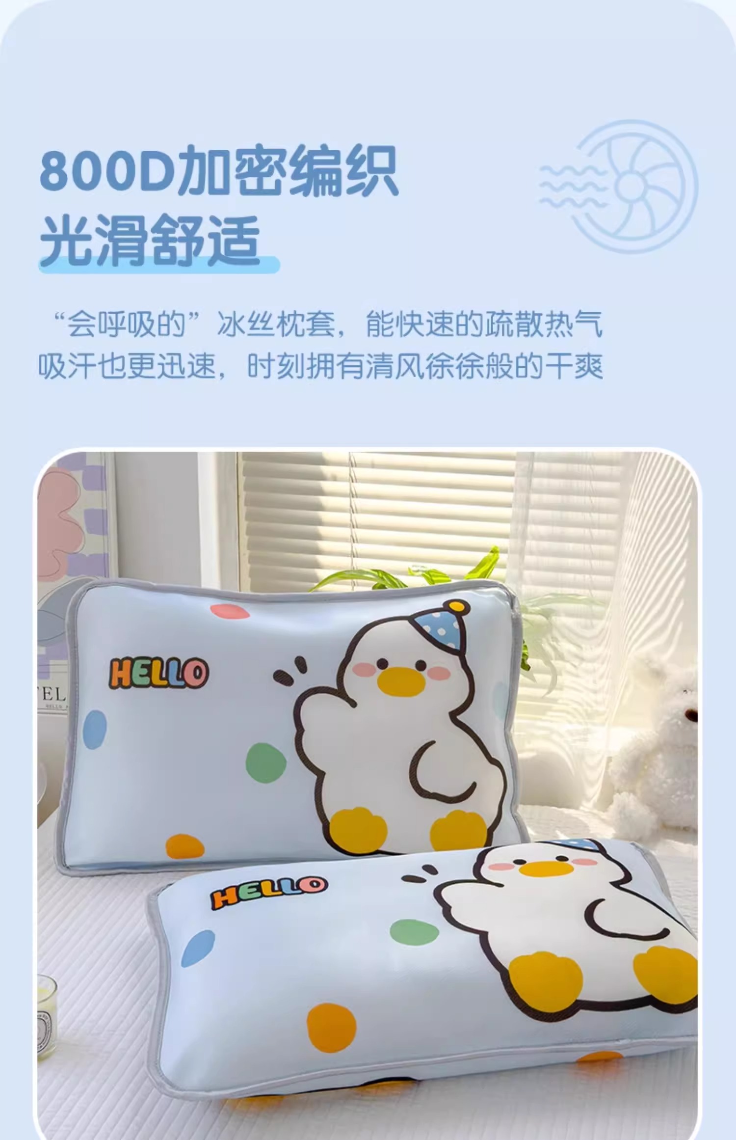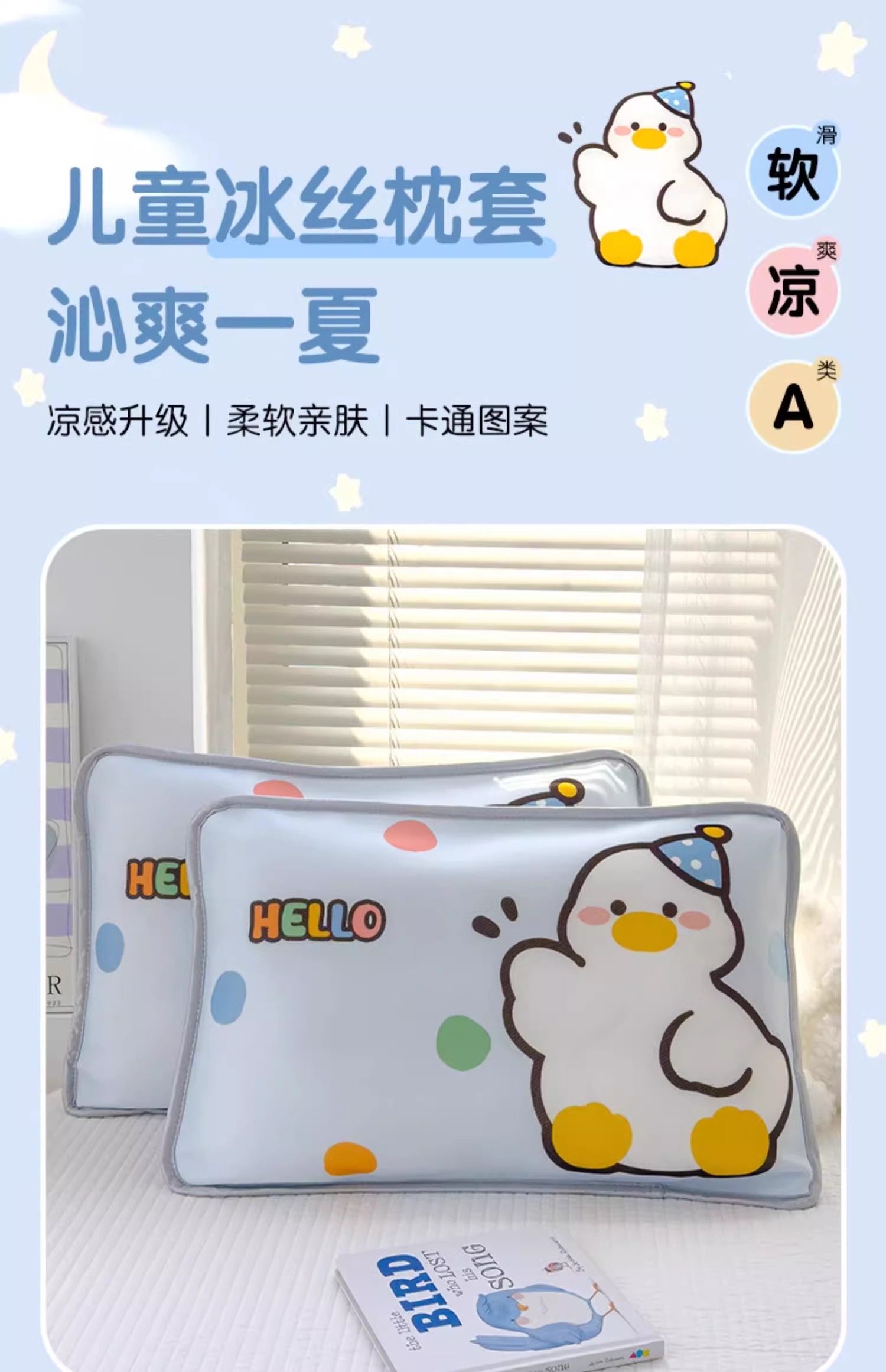 丽美人家纺 2025新款儿童冰丝枕套 加油鸭