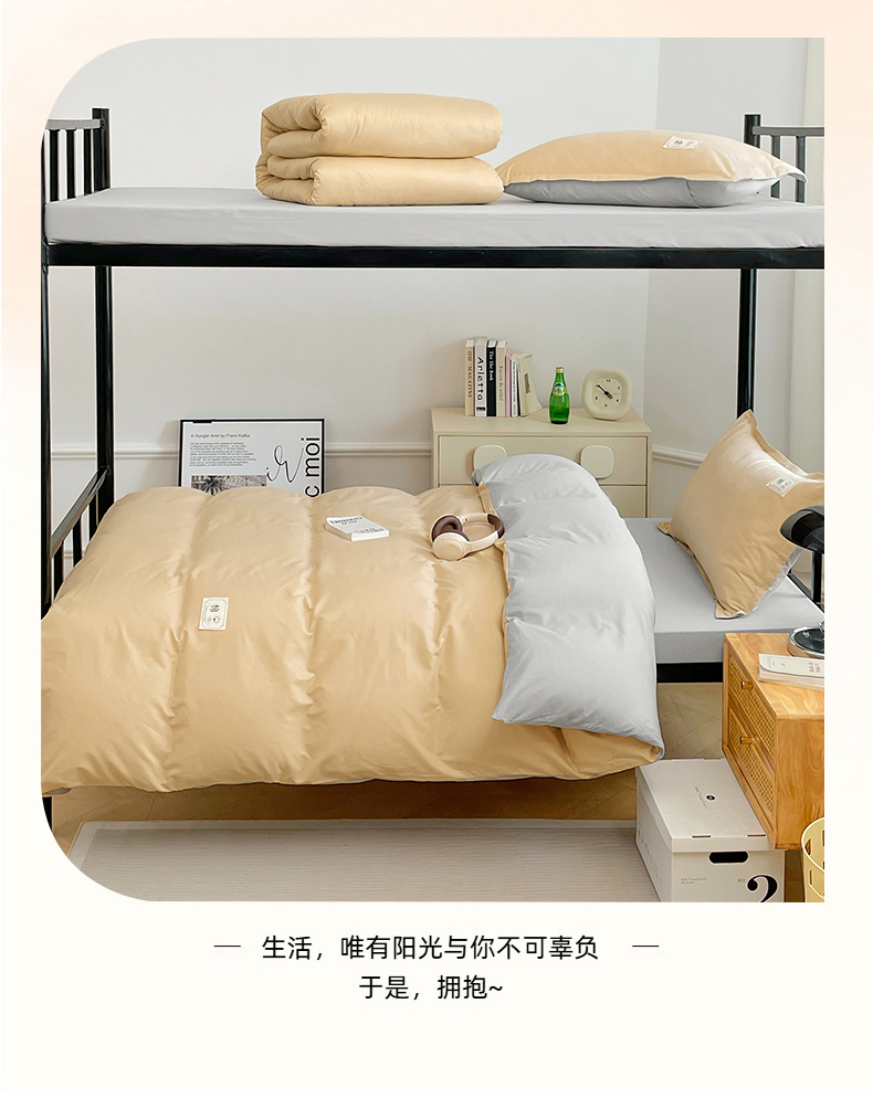 六件套:【三件套+4斤羽丝绒被子+4斤羽丝绒床垫(90*200)+枕芯】