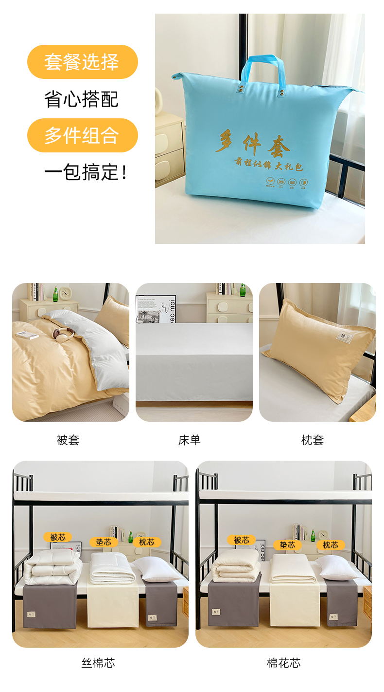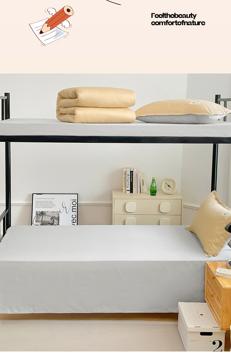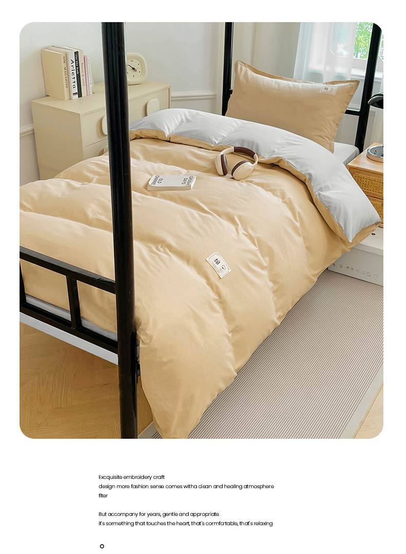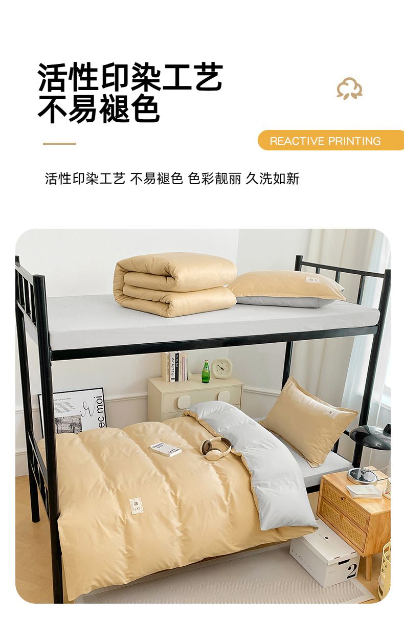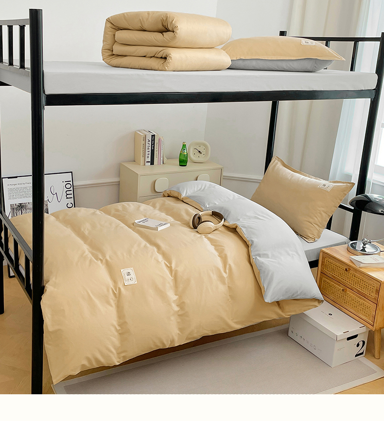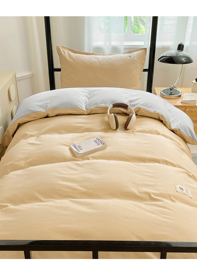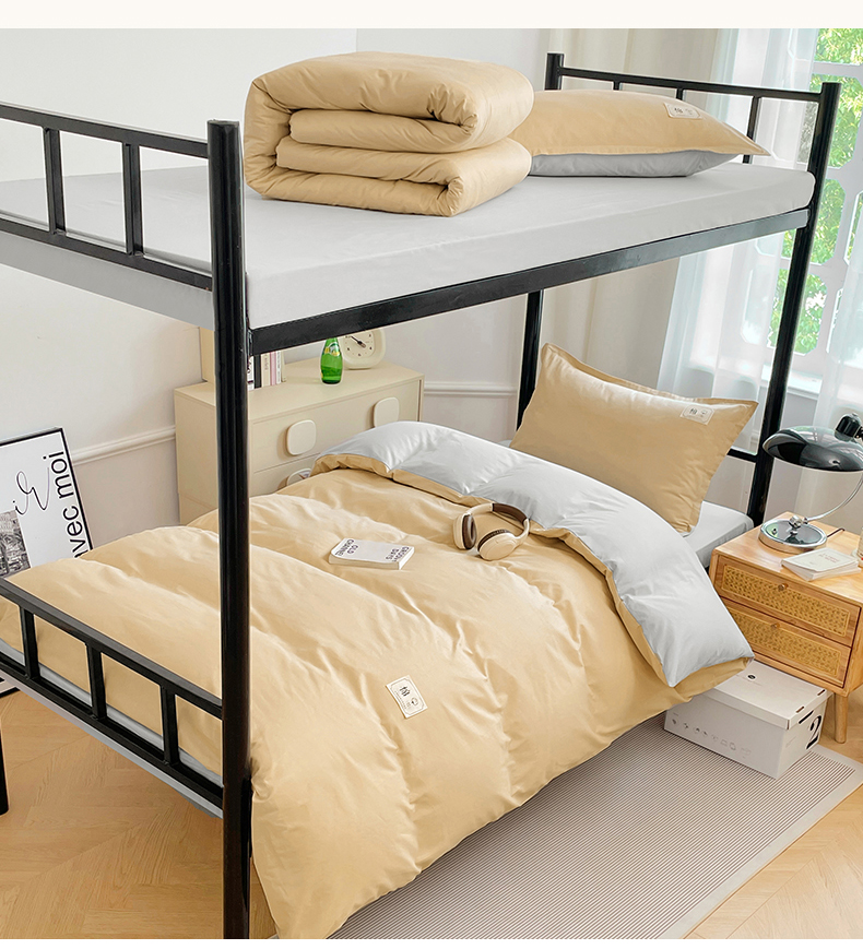 锦润家纺2025新款13372全棉纯色双拼学生宿舍三件套六件套