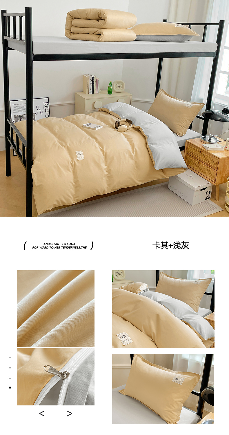 • 91家纺网 家纺一手货源 找家纺 锦润家纺2025新款13372全棉纯色双拼学生宿舍三件套六件套