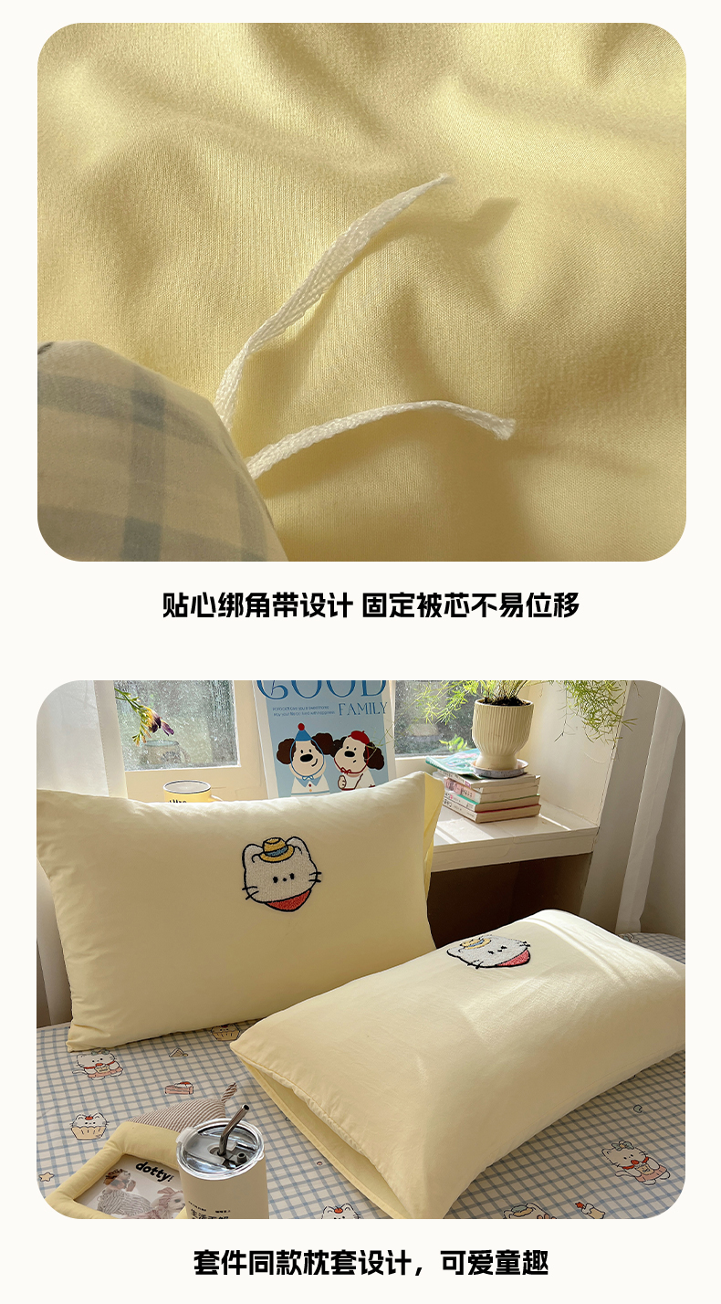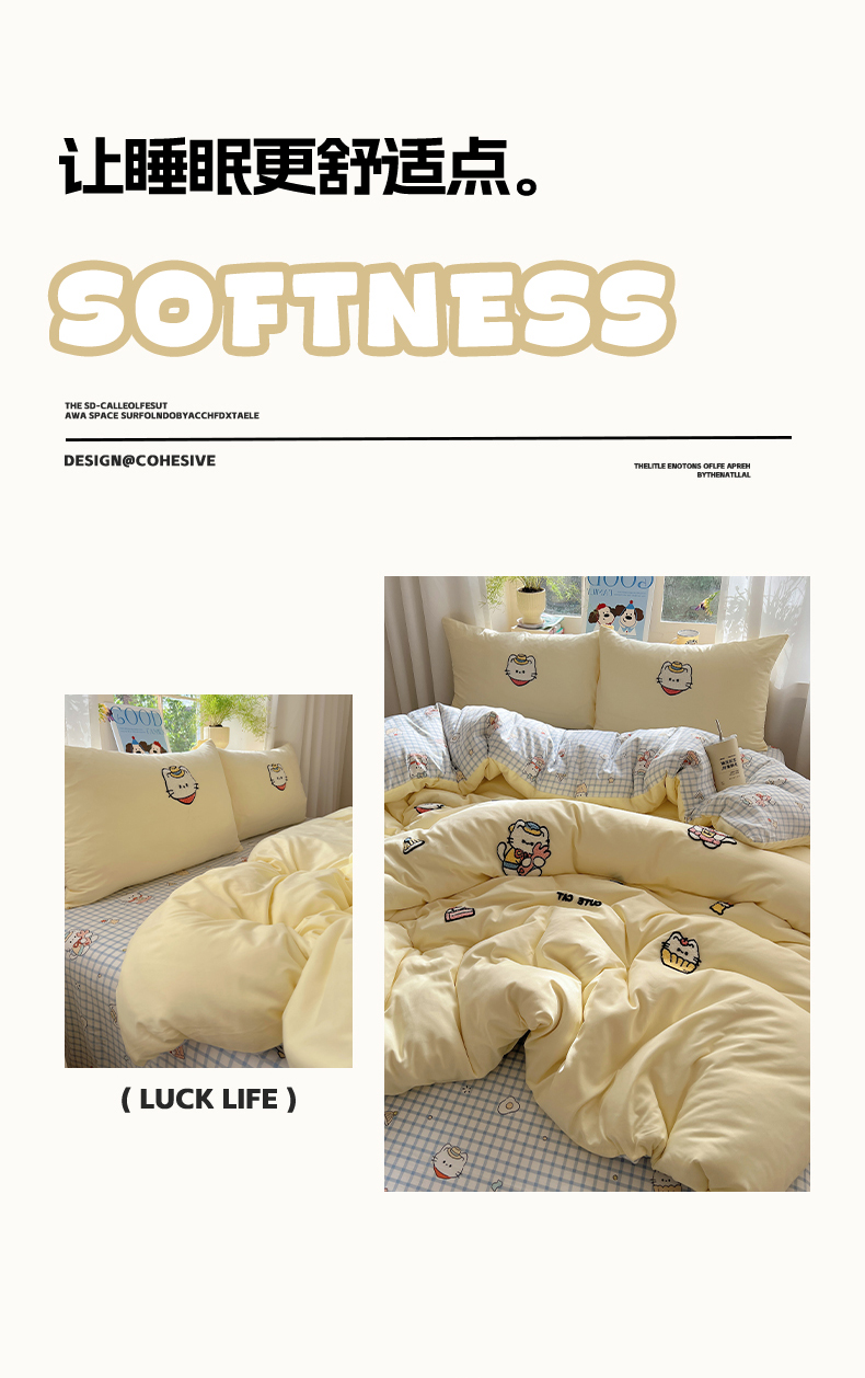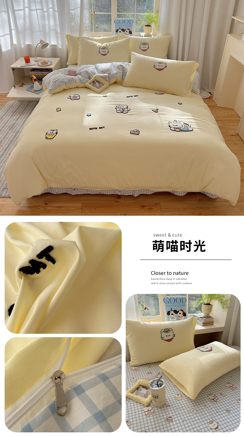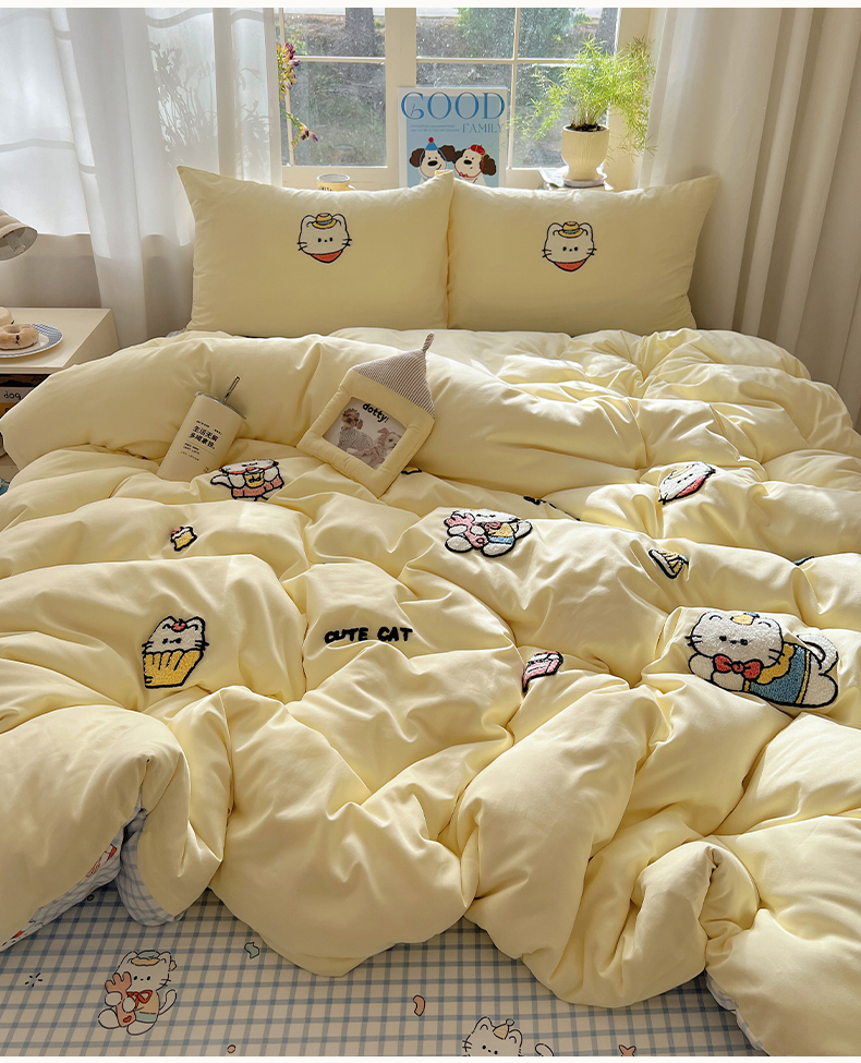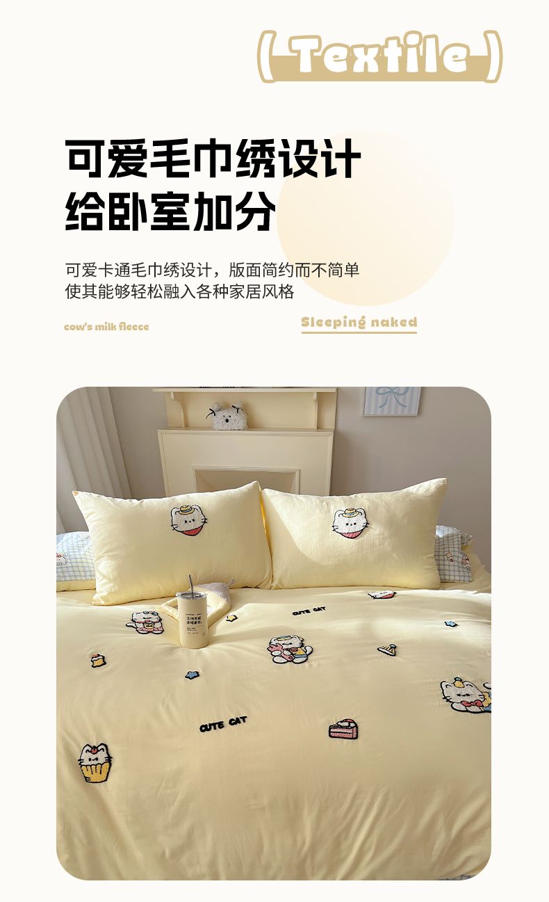 当前位置: 91家纺网 > 商品网购 > 床品套件 > 四件套 > 水洗棉四件套 > 韩都家居 2025新款卡通软萌水洗棉毛巾绣四件套 萌喵时光