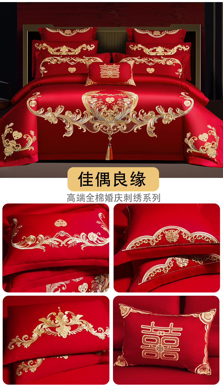 当前位置: 91家纺网 > 商品网购 > 床品套件 > 四件套 > 婚庆四件套 > 用心 2025新款婚庆全棉刺绣四件套多件套系列 佳偶良缘