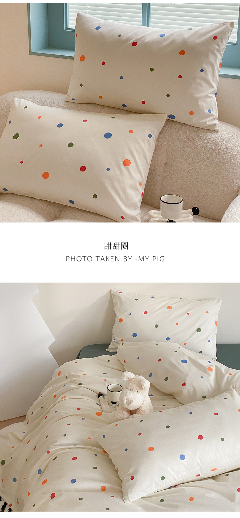 商品名称:Mr.pig猪先生水洗棉 2025新款小清新印花水洗棉全棉枕套 甜甜圈