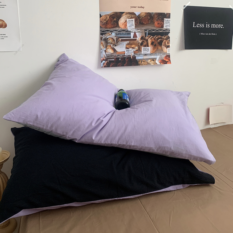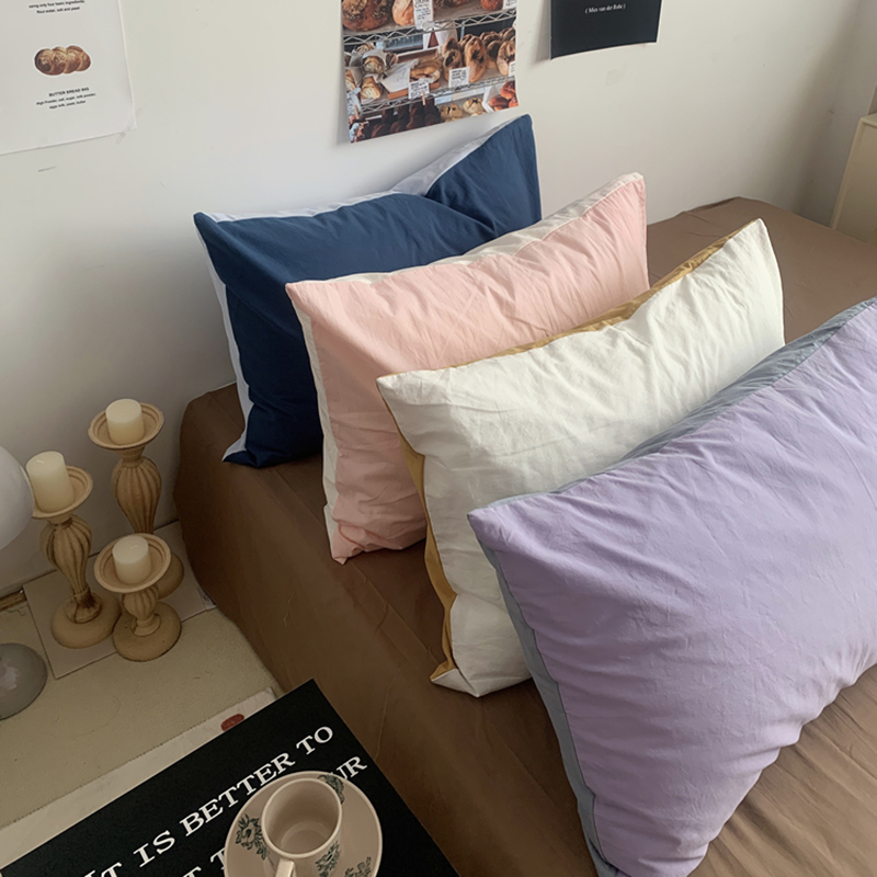 柚可家居 2024新款40支全棉色织水洗棉单品系列-单枕套 香芋紫拼蓝灰