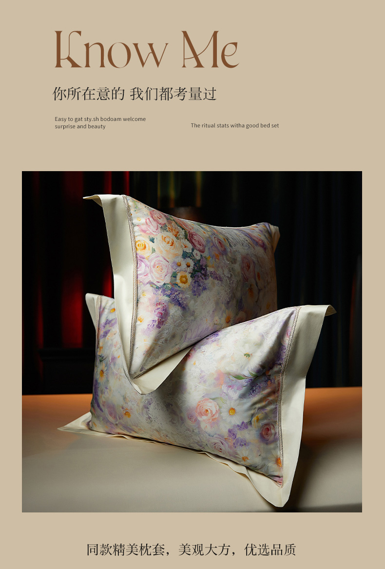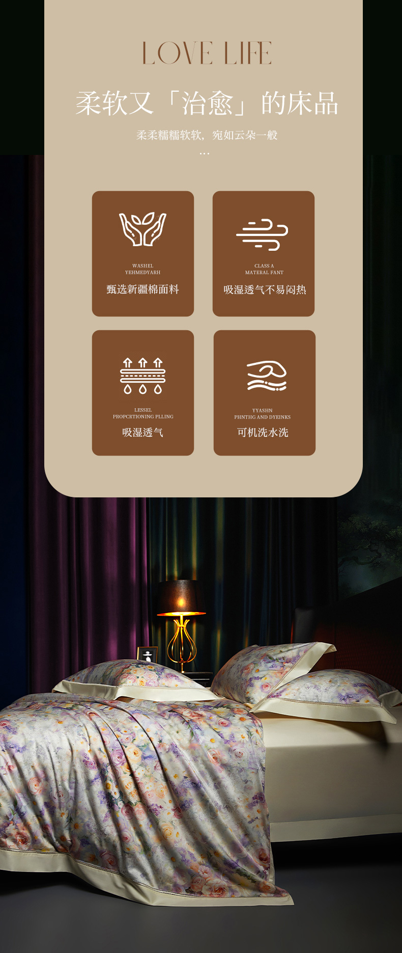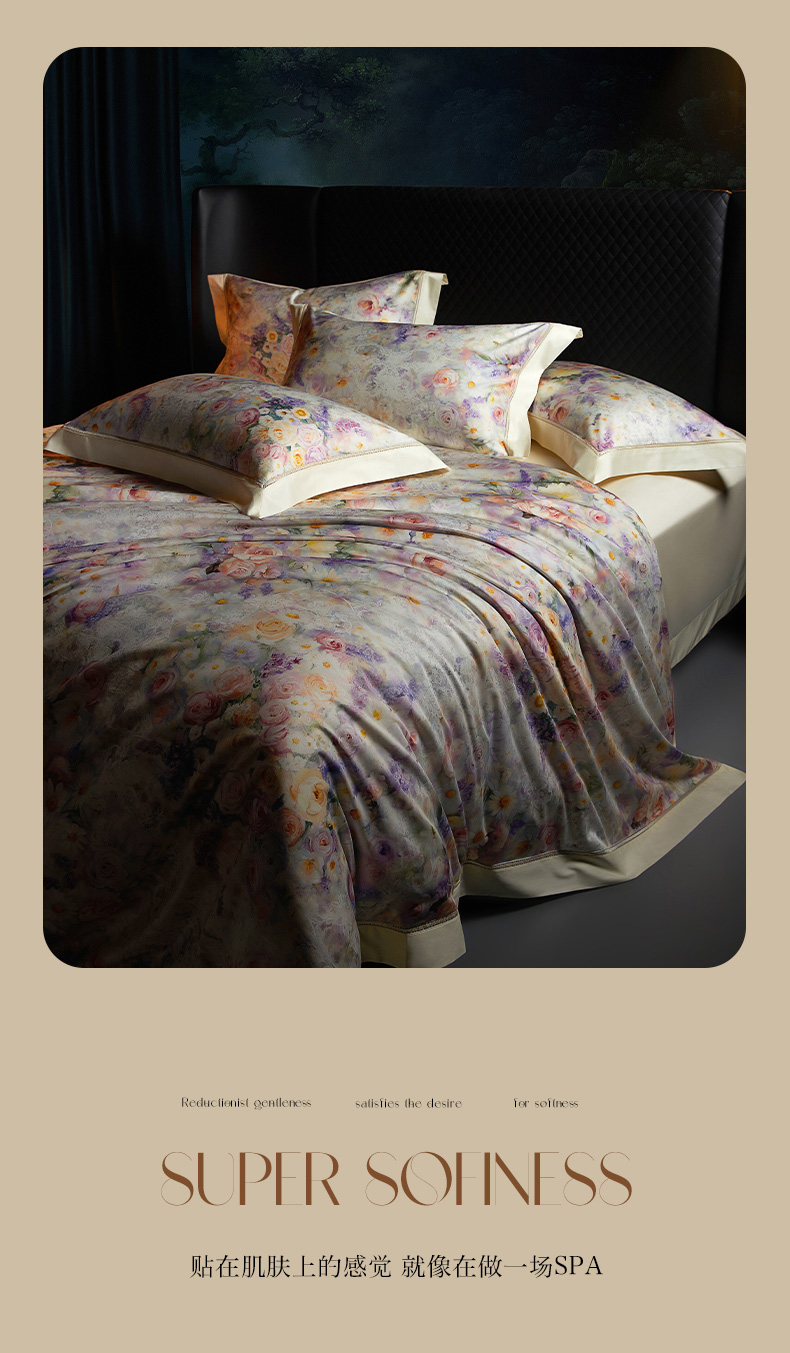 (总)米多多 2025新款新疆长绒棉数码印花四件套-暗香,暗香-米黄,暗香-紫