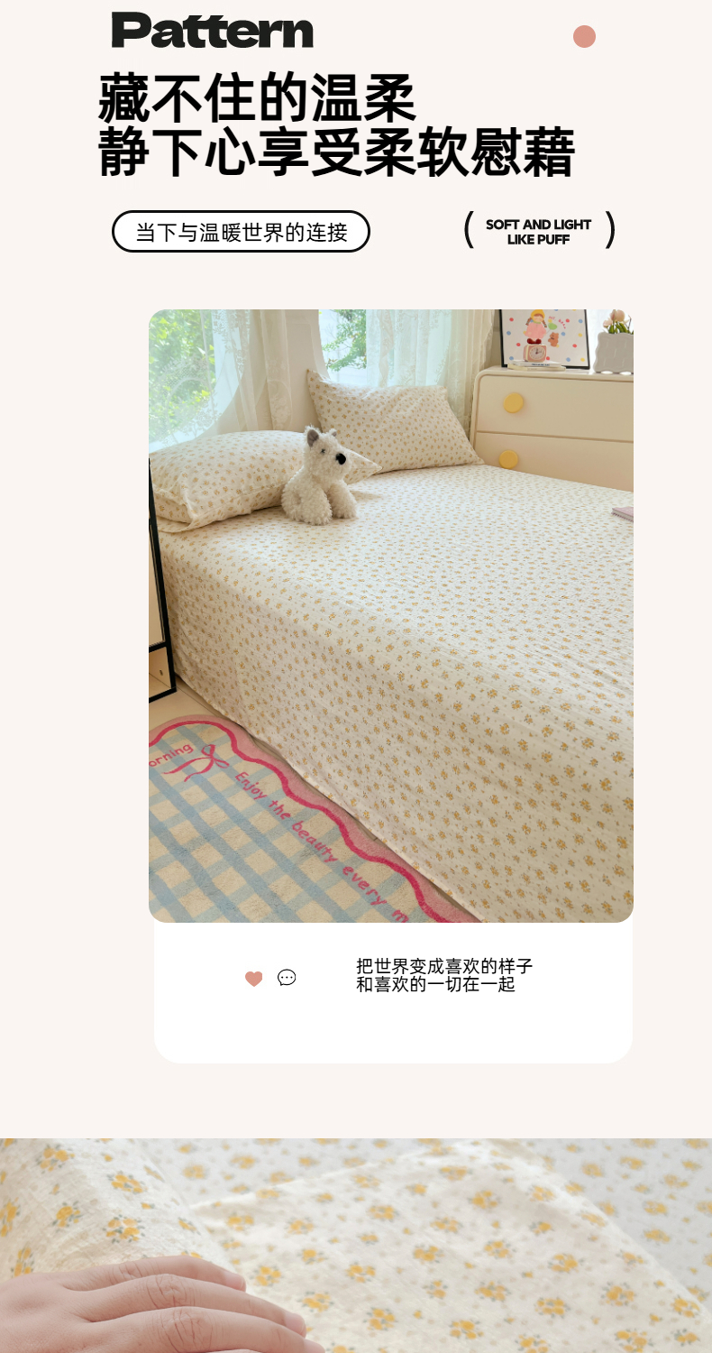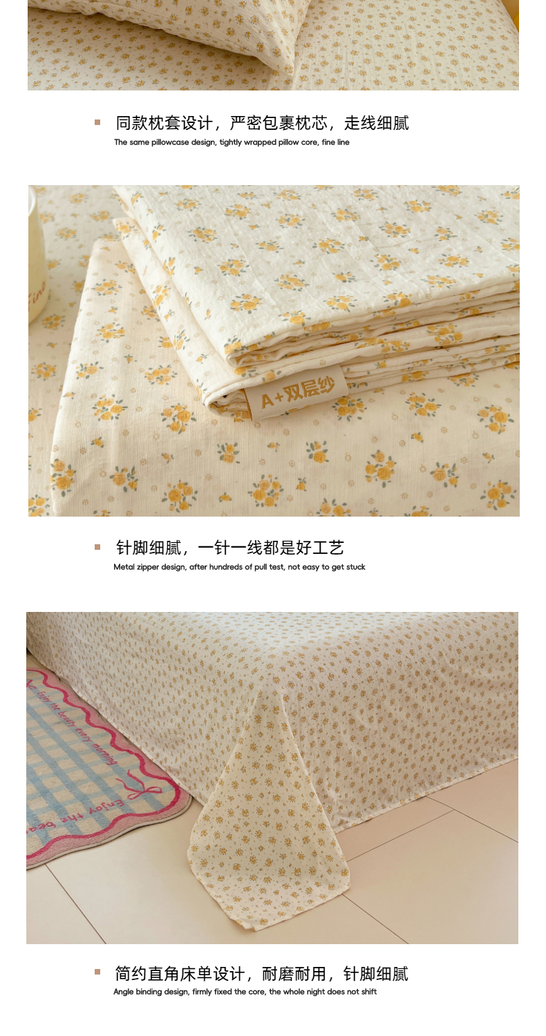 (总)卡迪熊家纺 2025新款水洗双层纱双拼碎花四件套,爱心蝴蝶结,彩色波点,多彩心情,分格棋盘,格纹猫咪,黑色波点,花园兔子,欢乐聚会,欢乐小狗,可爱猫猫,腊肠狗狗,满满花海,美好心情,藤条花蔓,甜点小屋,甜甜小兔,甜心猫咪,晚安世界,小花朵朵,小小樱桃