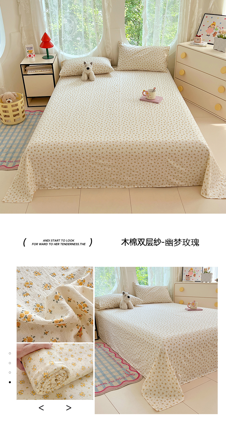 卡迪熊家纺 2025新款印花木m双层纱床单系列 木m双层纱-幽梦玫瑰
