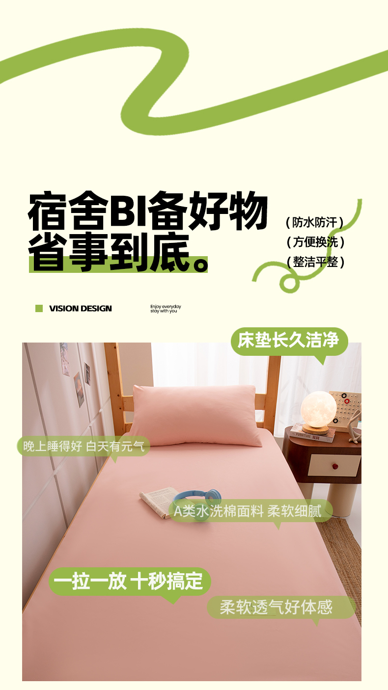 商品名称:暖季家纺2025新款无印风学生防水床笠 防水-珊瑚粉
