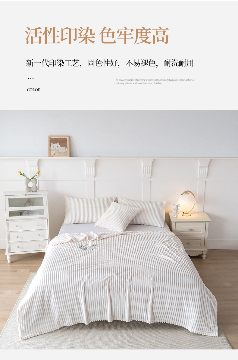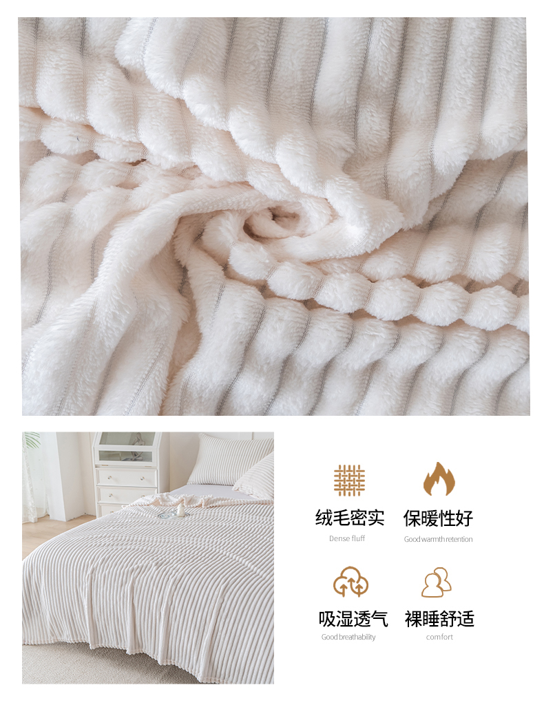 商品名称:楼兰公主 2025新款小抽条纯色双面绒毛毯 浅灰