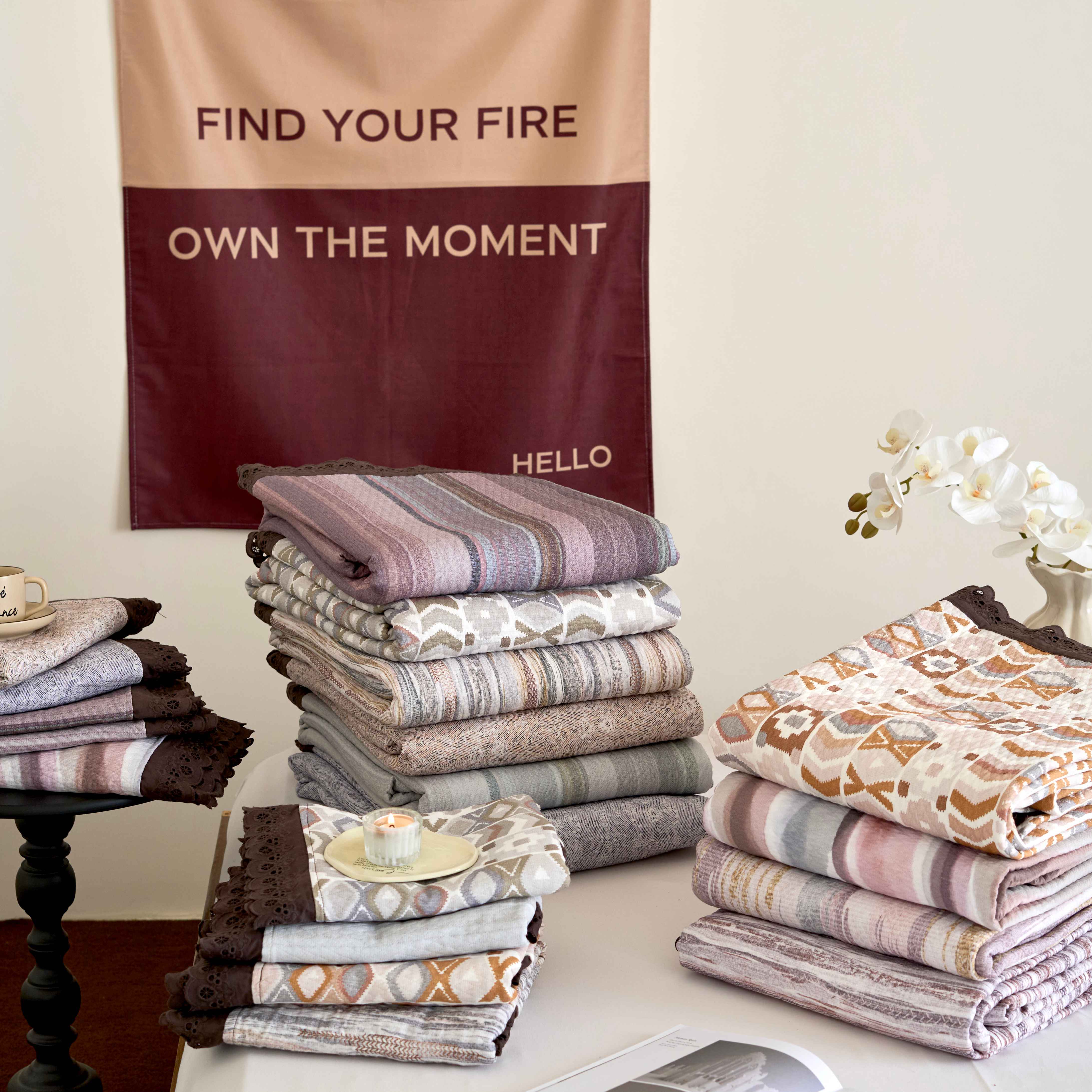 月夏 2025新款春夏全棉纯棉提花床盖三件套 海岸-咖