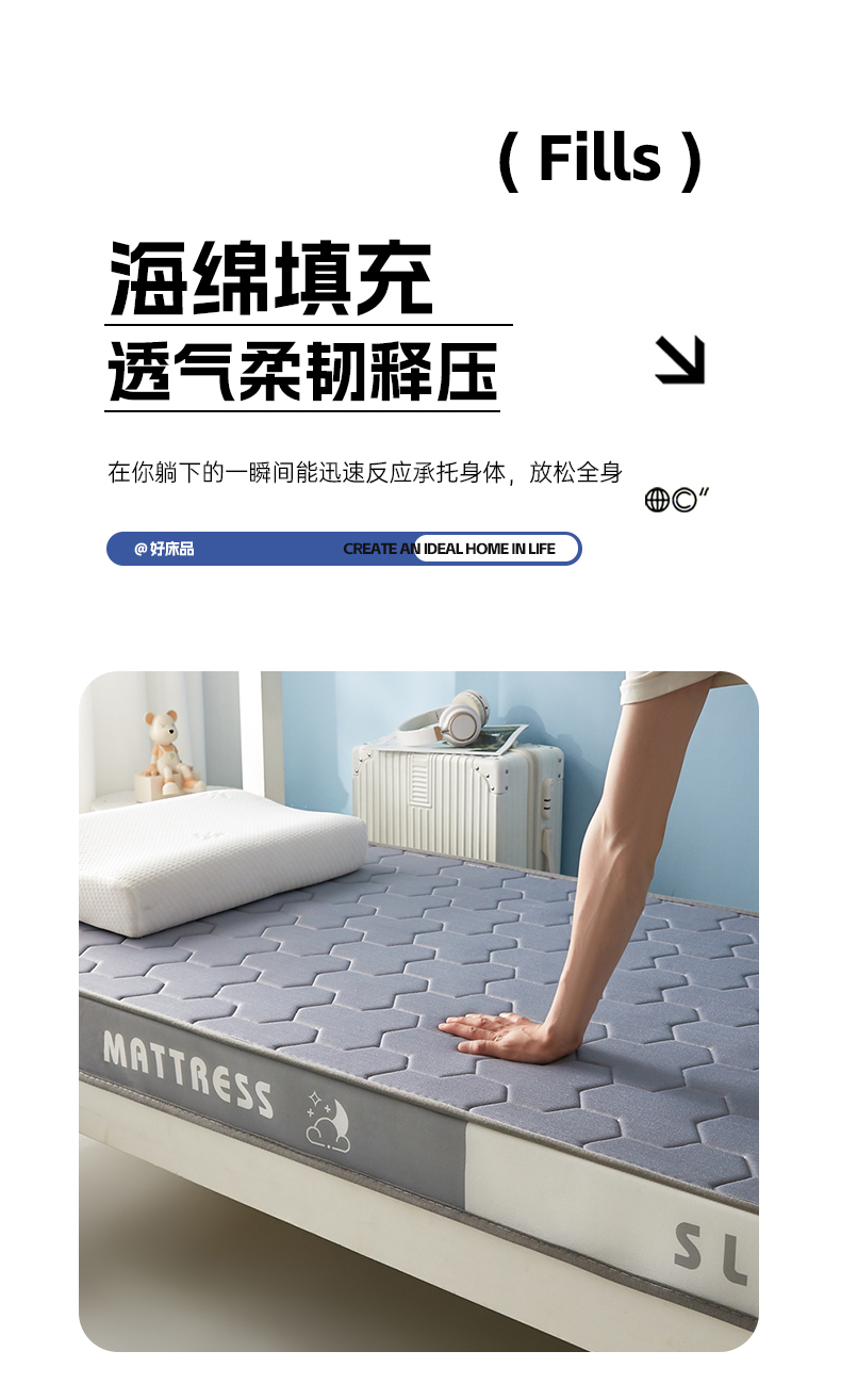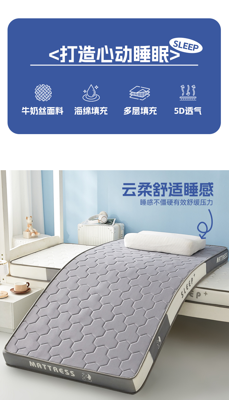 当前位置: 91家纺网 > 商品网购 > 床垫/床褥 > 普通床垫 > 一禾 2025新款立体纯色海绵牛奶丝床垫-学生床垫 立体灰