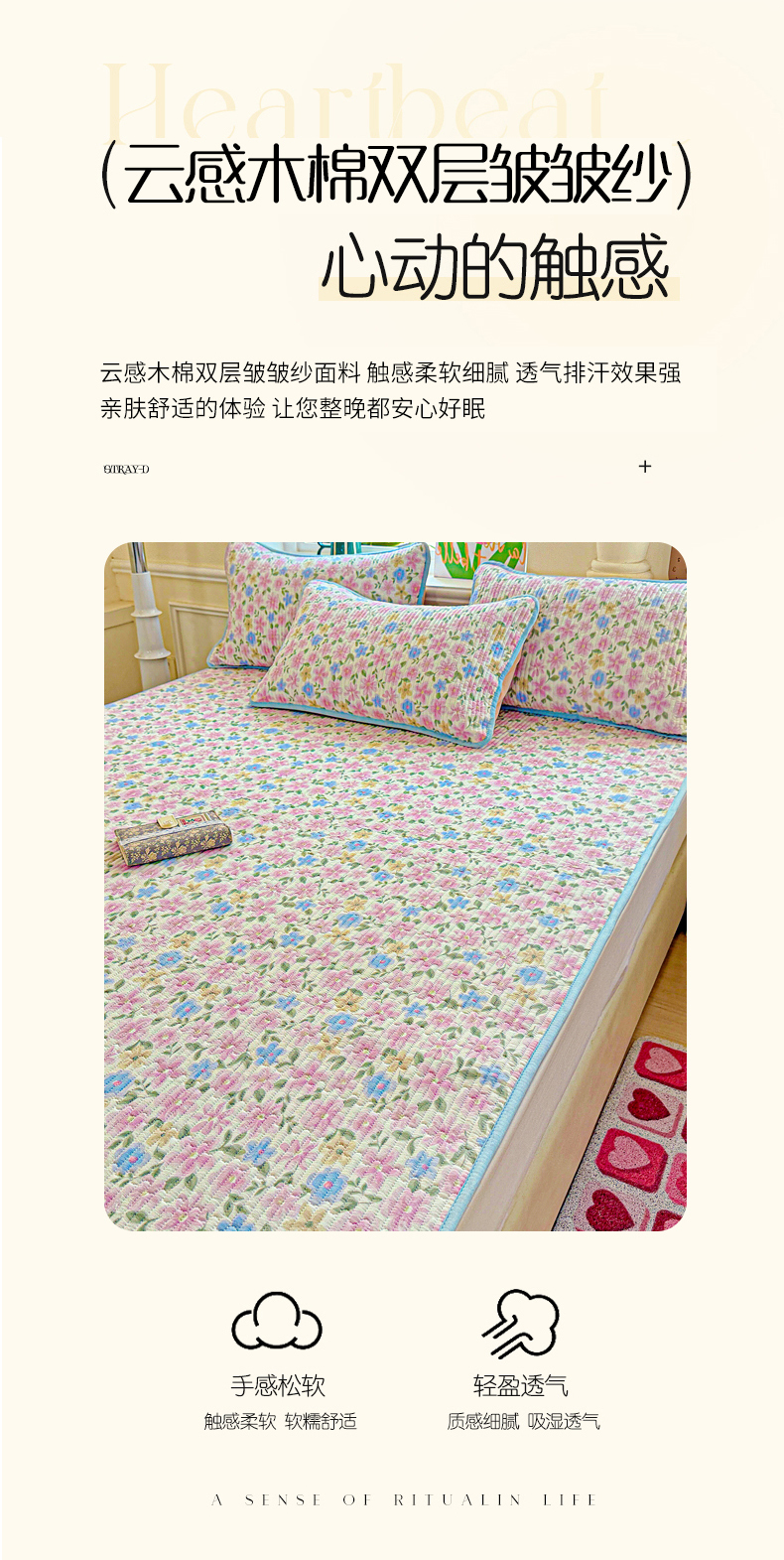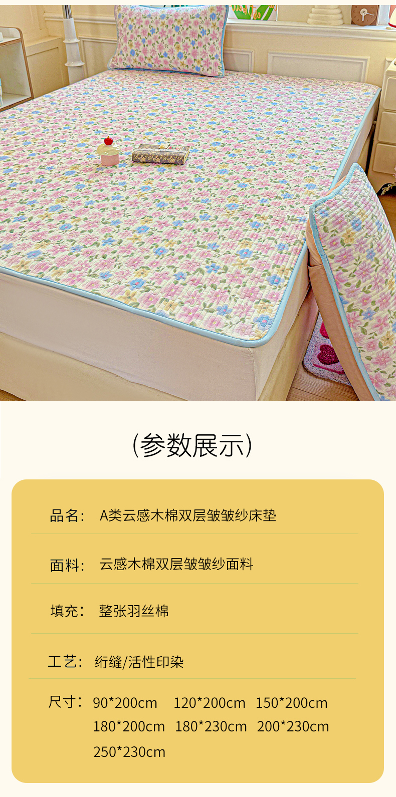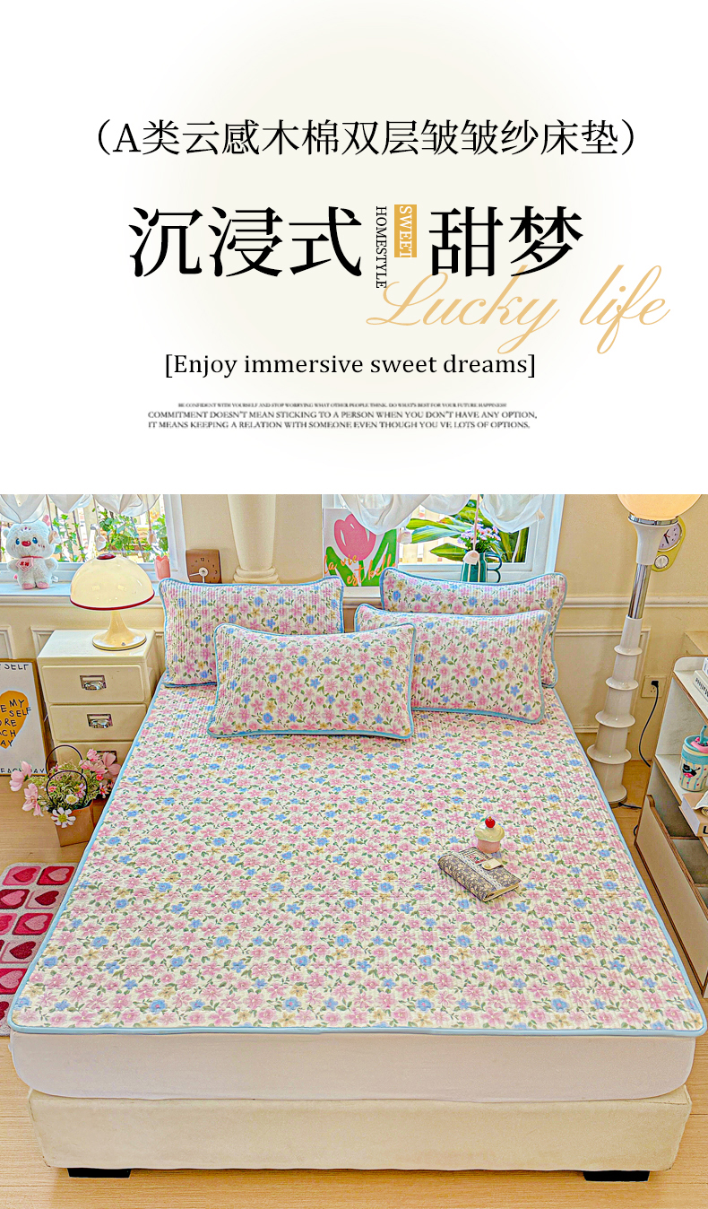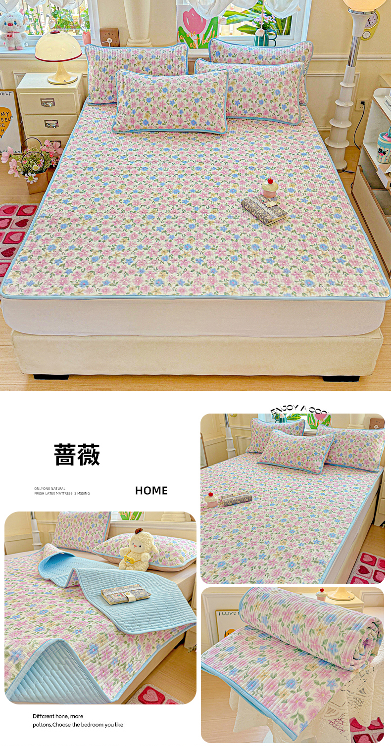 • 91家纺网 家纺一手货源 找家纺 恒尚居 2025新款云感床褥垫双层皱皱纱学生软床垫床护垫-四季款-系列一 蔷薇