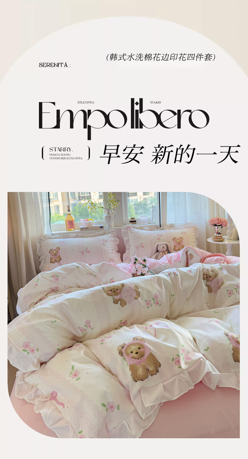 当前位置: 91家纺网 > 商品网购 > 床品套件 > 四件套 > 水洗棉四件套 > 慕澄家纺 2025新款小清新花边款水洗棉四件套-第二波 花边款-花花小奶犬
