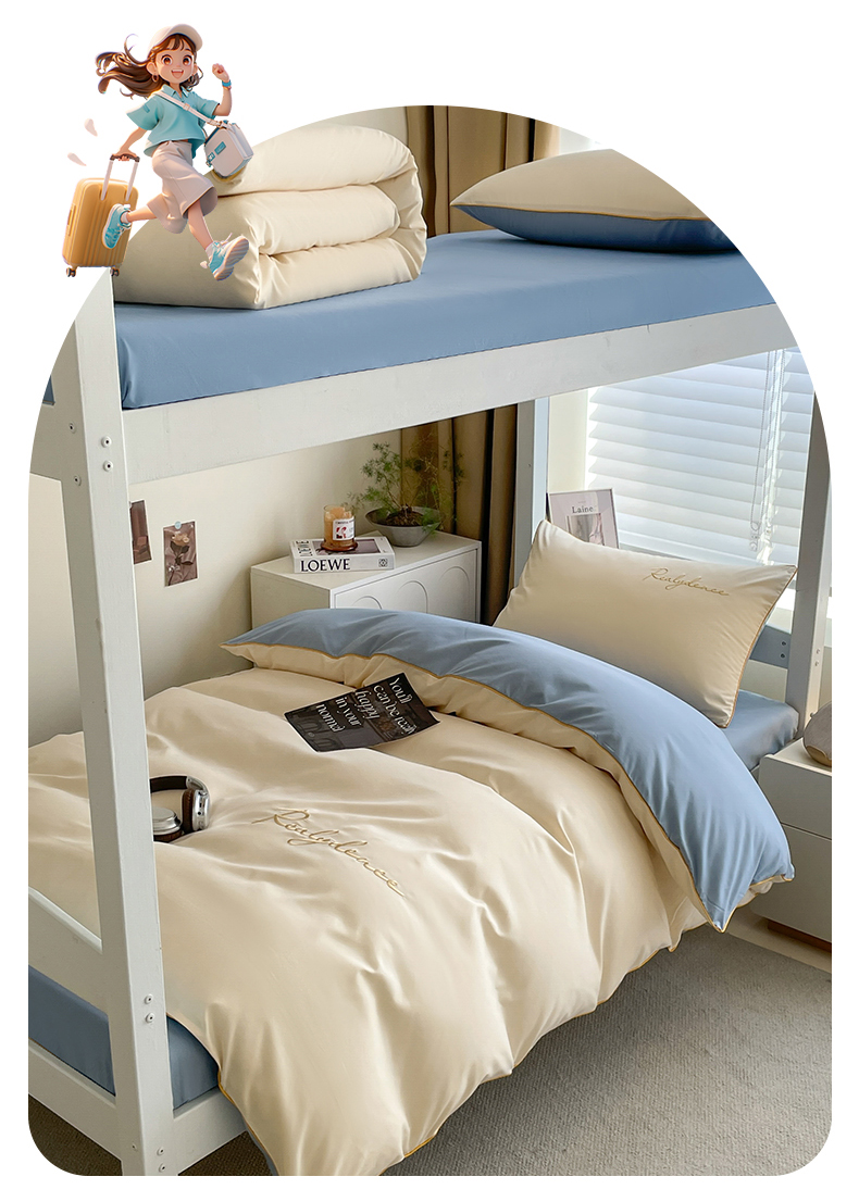 笙意家纺 2025新款亲肤水洗棉麻绳款学生三件套-安琪系列 安琪-奶昔白+海清