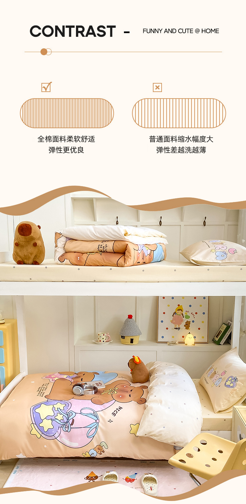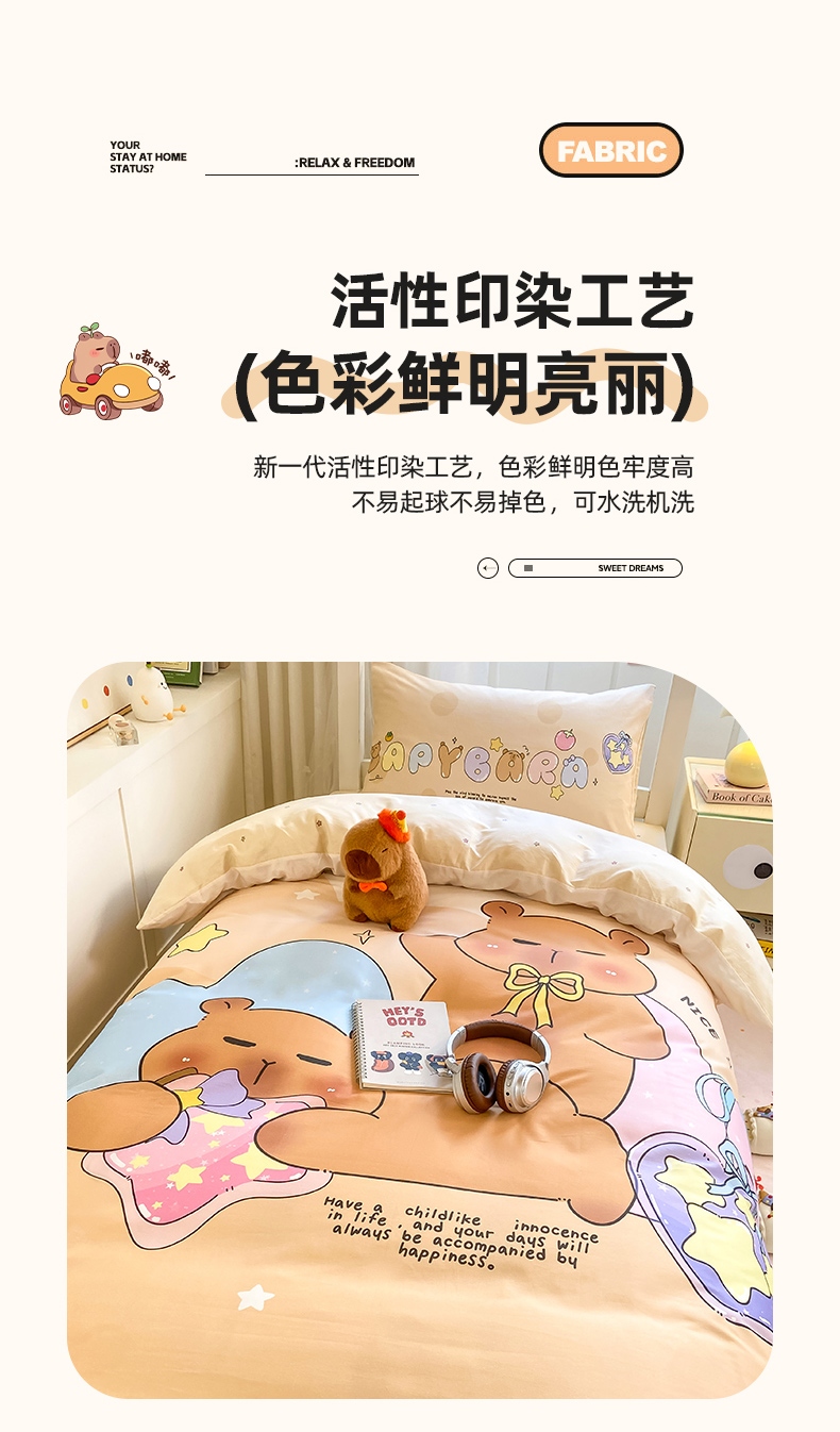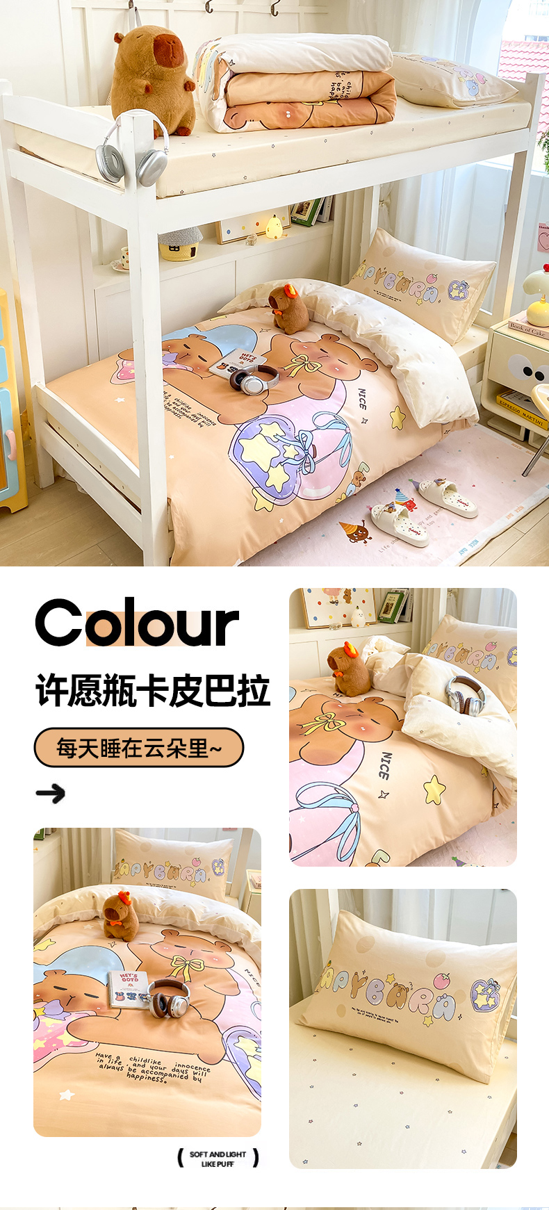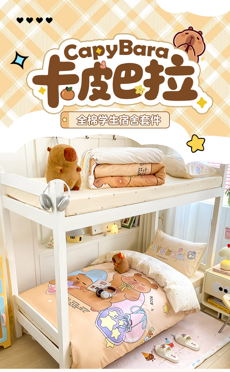 当前位置: 91家纺网 > 商品网购 > 床品套件 > 三件套 > 博雅2025新款卡皮巴拉全棉学生宿舍套件三件套多件套 许愿瓶卡皮巴拉