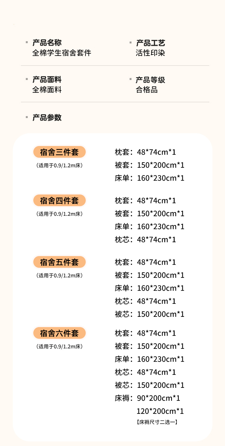 【床笠款】0.9六件套(3斤棉花春秋被) | ¥176.00 |