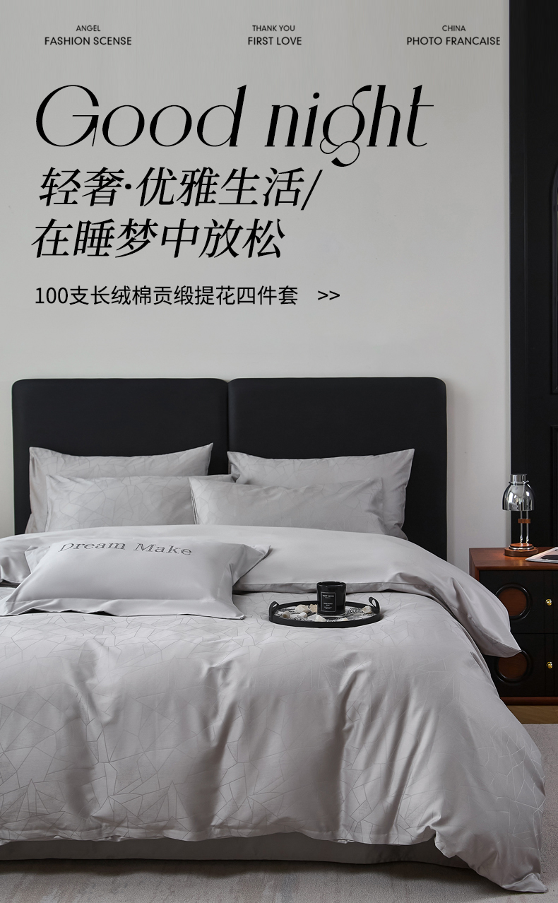 当前位置: 91家纺网 > 商品网购 > 床品套件 > 四件套 > 长绒棉四件套 > (总)ONE TWO ONE 121 2025新款高支高密长绒棉贡缎提花四件套-璀璨光影【会员-20 平台控价券后不得低于228/318/338元】