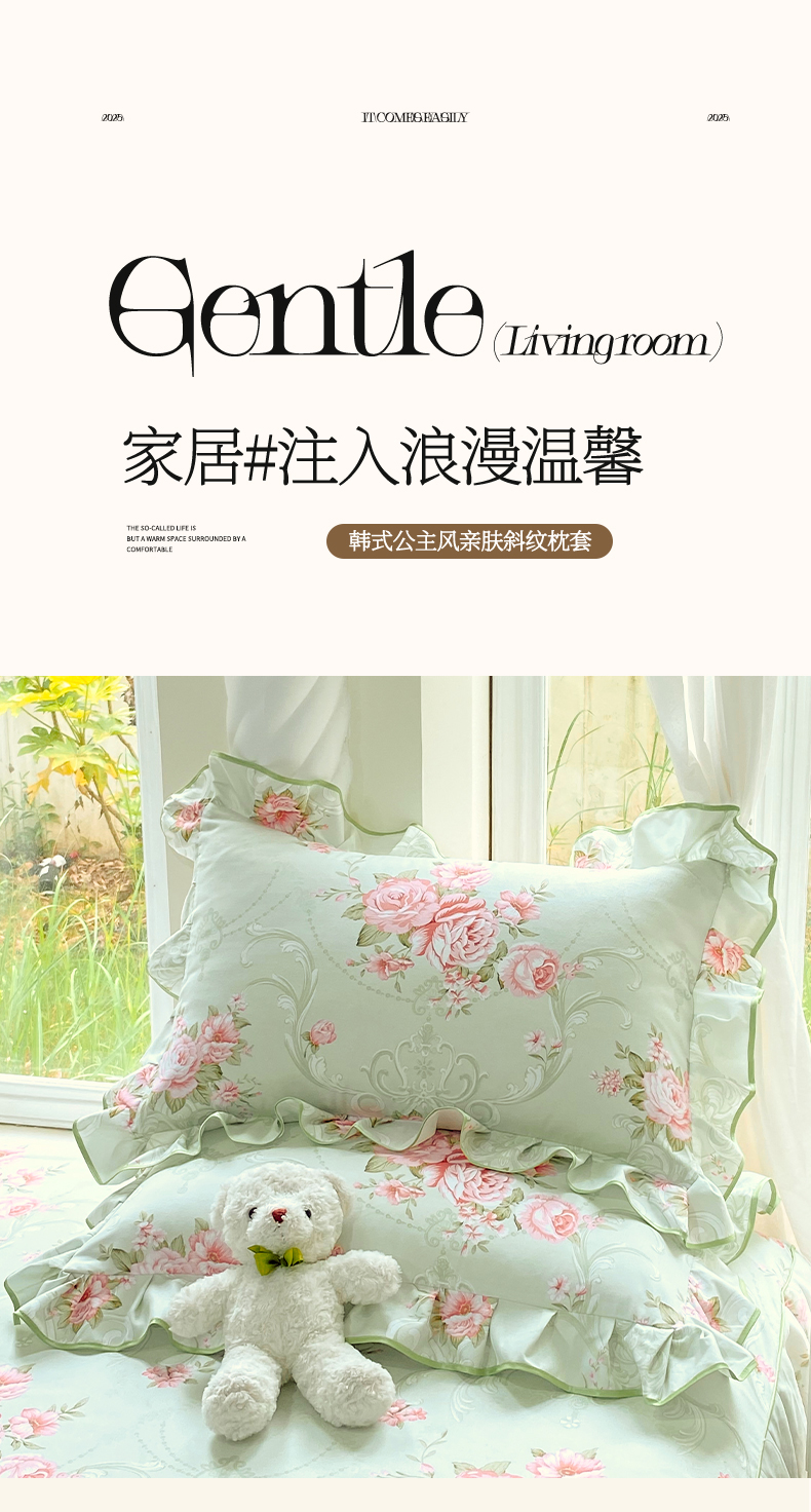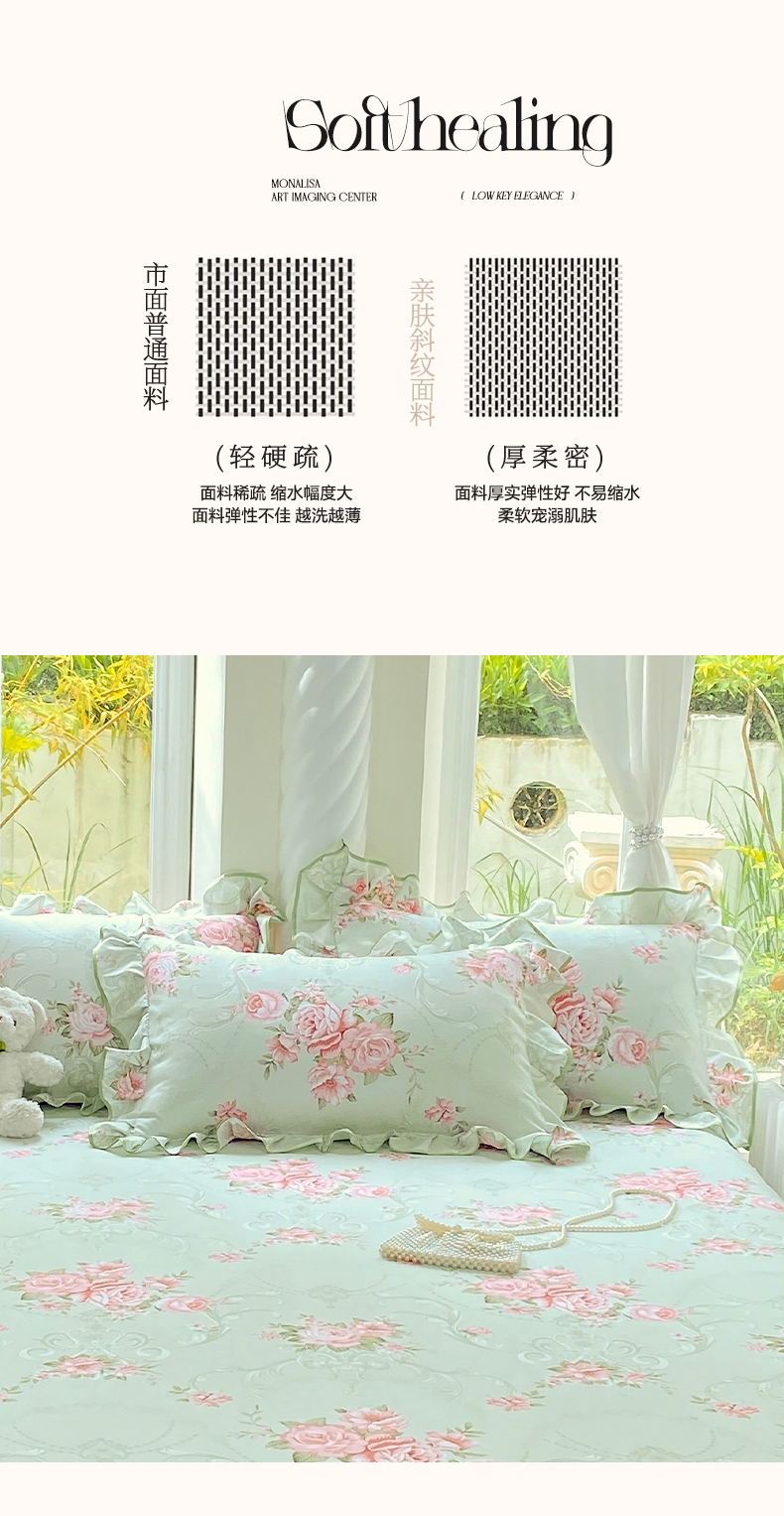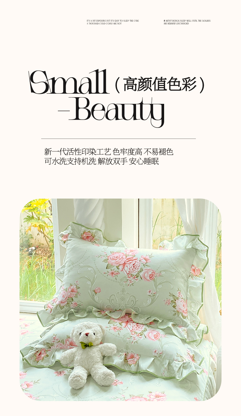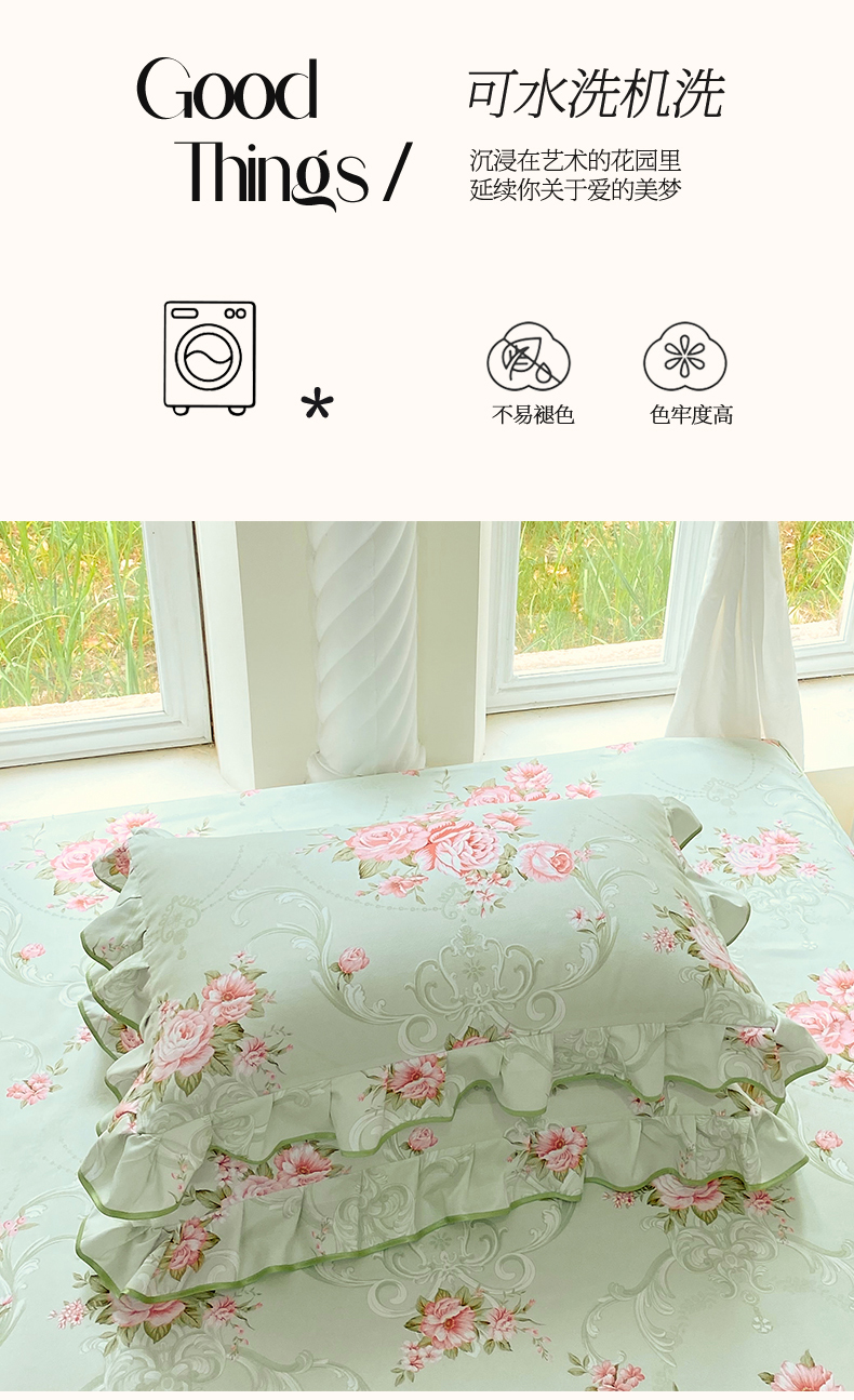 商品名称:雨彤家纺 2025新款韩式公主风亲肤斜纹枕套 公主风-莱茵花畔