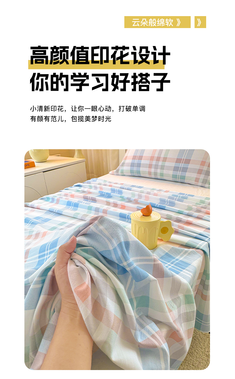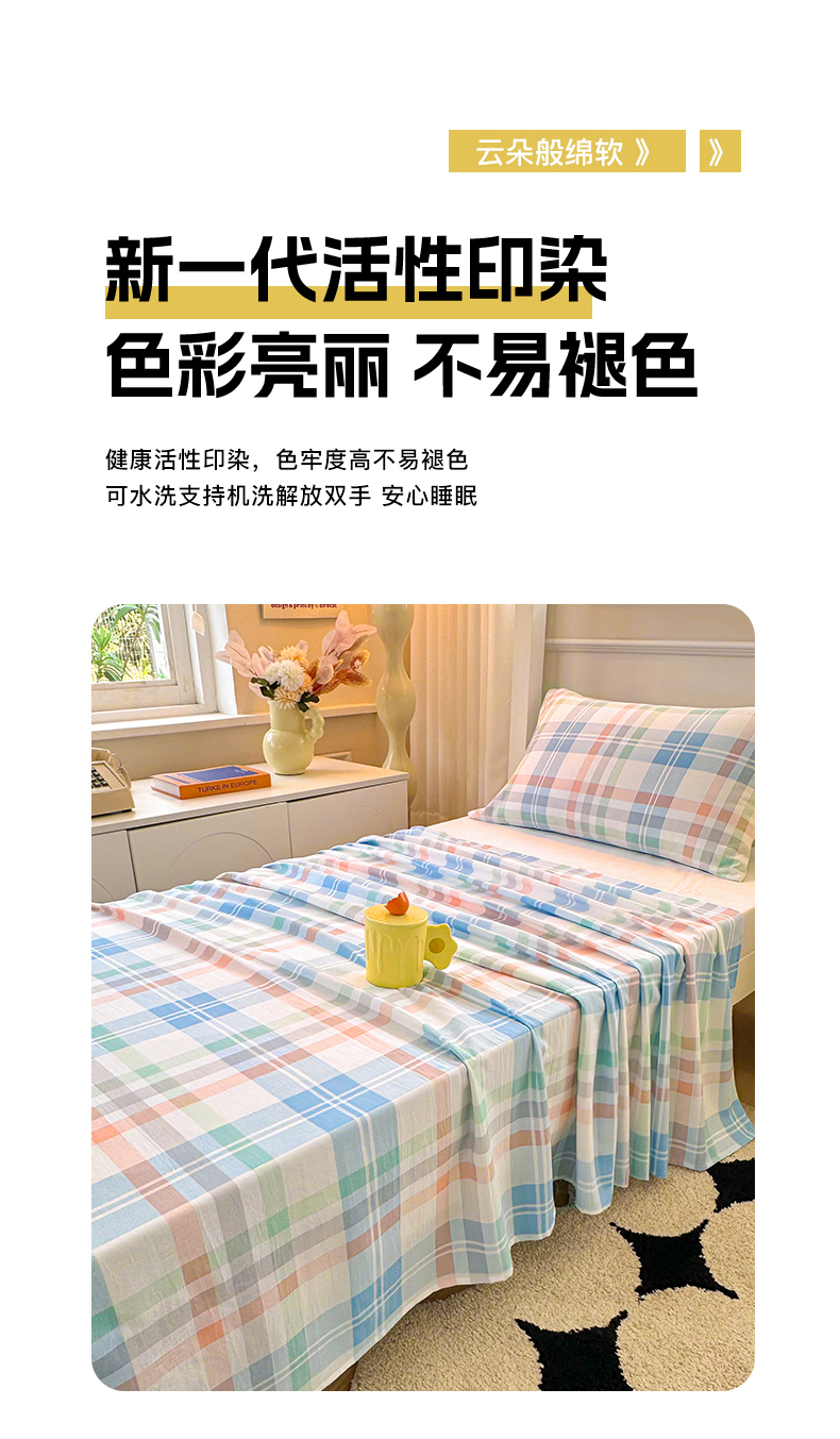 • 91家纺网 家纺一手货源 找家纺 雨彤家纺 2025条纹水洗棉学生宿舍床单单床单床单单件 索尔