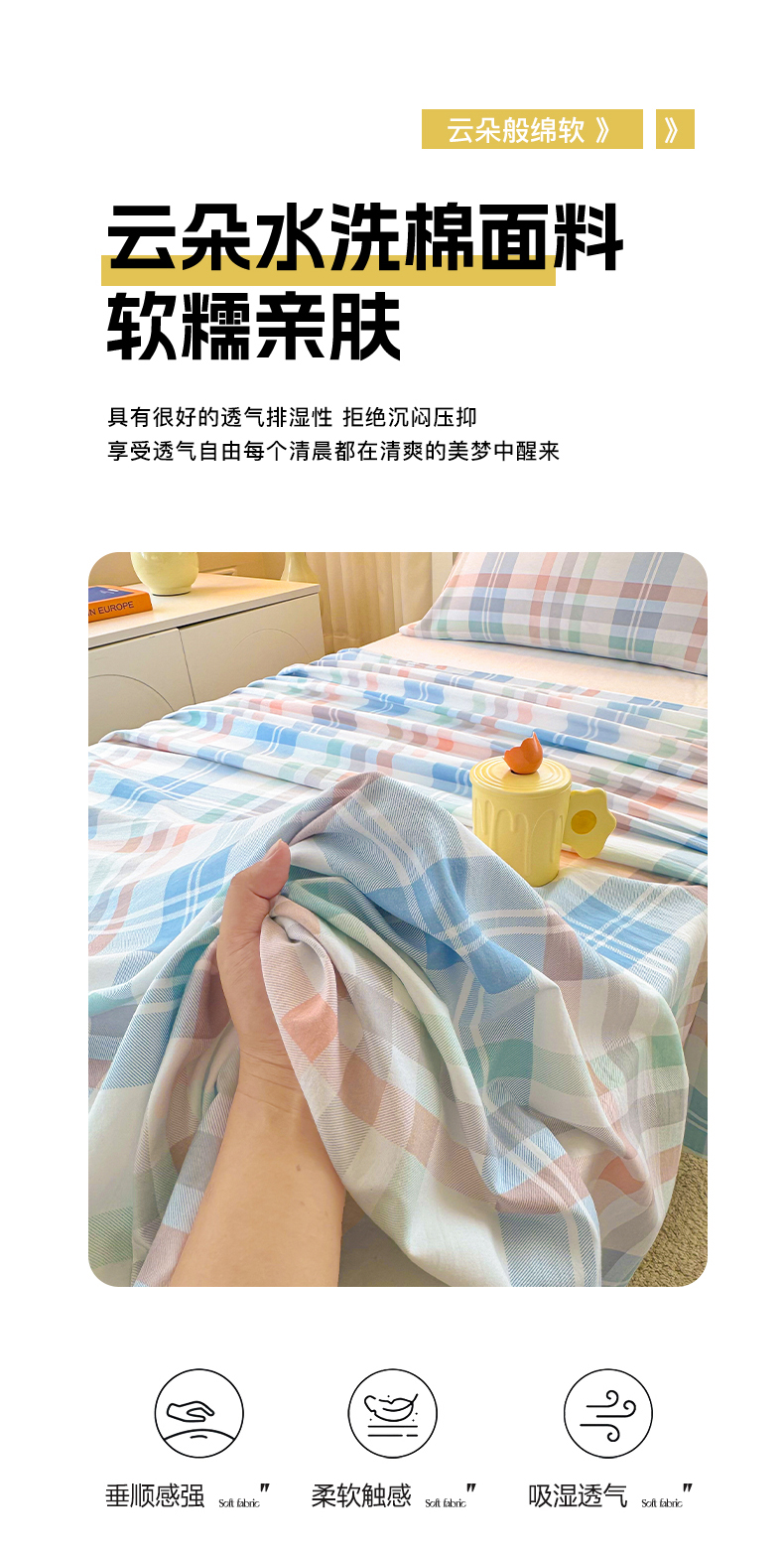 雨彤家纺 2025条纹水洗棉学生宿舍床单单床单床单单件 索尔