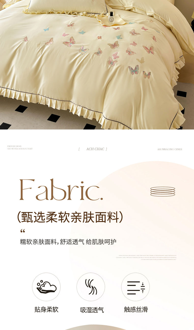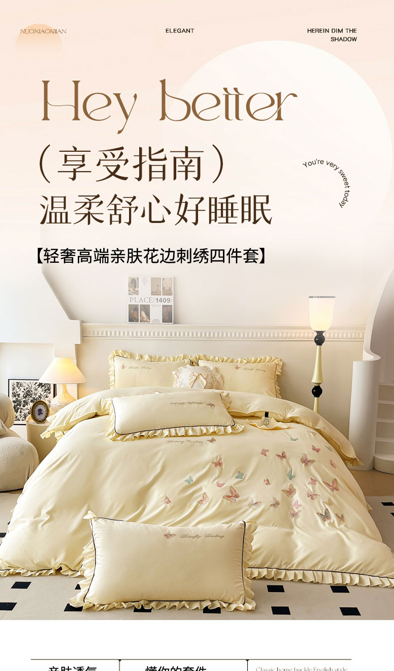 当前位置: 91家纺网 > 商品网购 > 床品套件 > 四件套 > 其它四件套 > 艺玲家纺 2025新款轻奢高级感亲肤棉床单床盖床笠少女心刺绣四件套 蝴蝶梦-绿