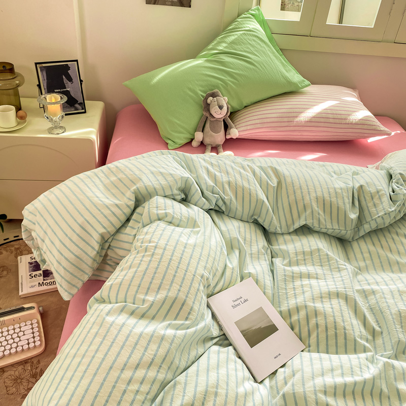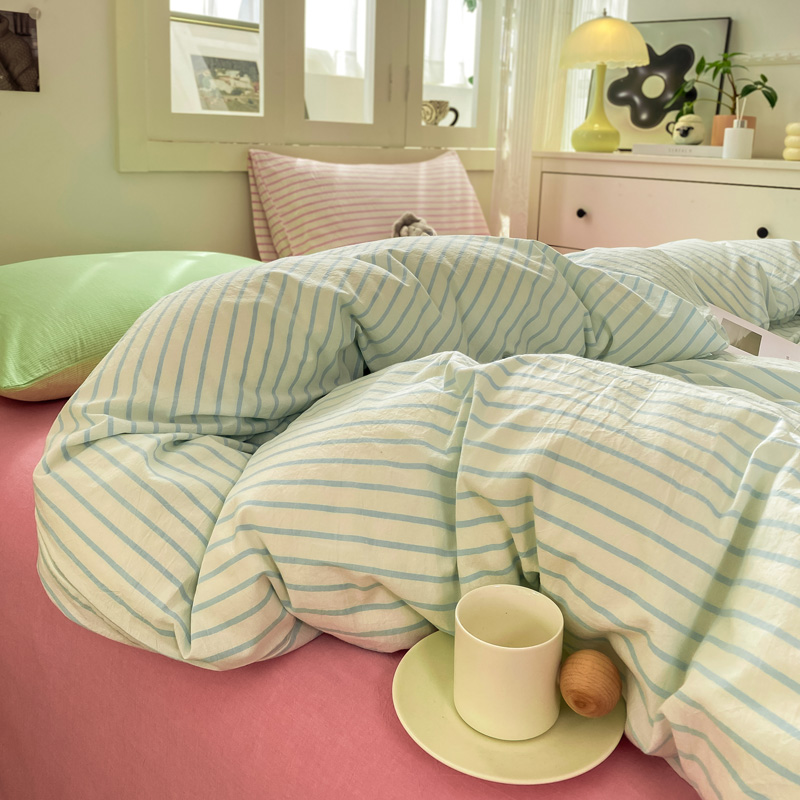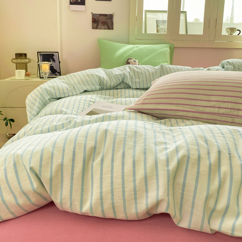 当前位置: 91家纺网 > 商品网购 > 床品套件 > 四件套 > 其它四件套 > 繁花家居 2025新款高克重水洗棉云朵棉条纹撞色系列四件套 玫红黑条