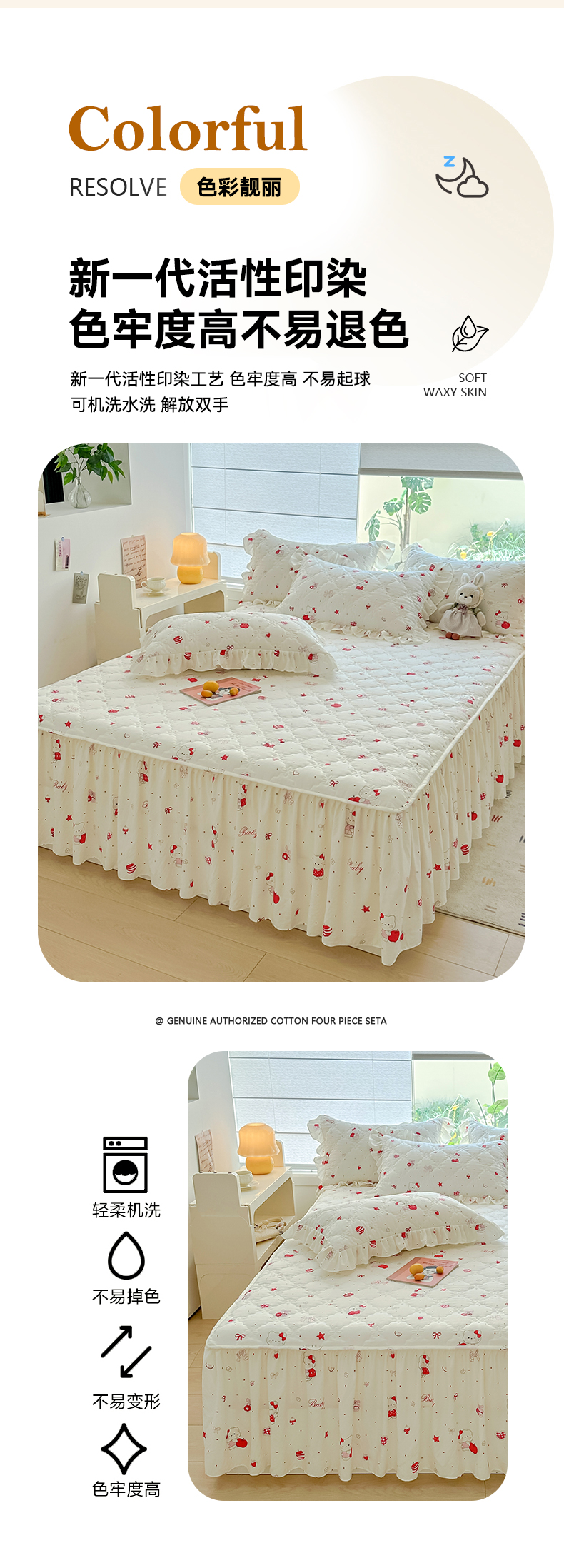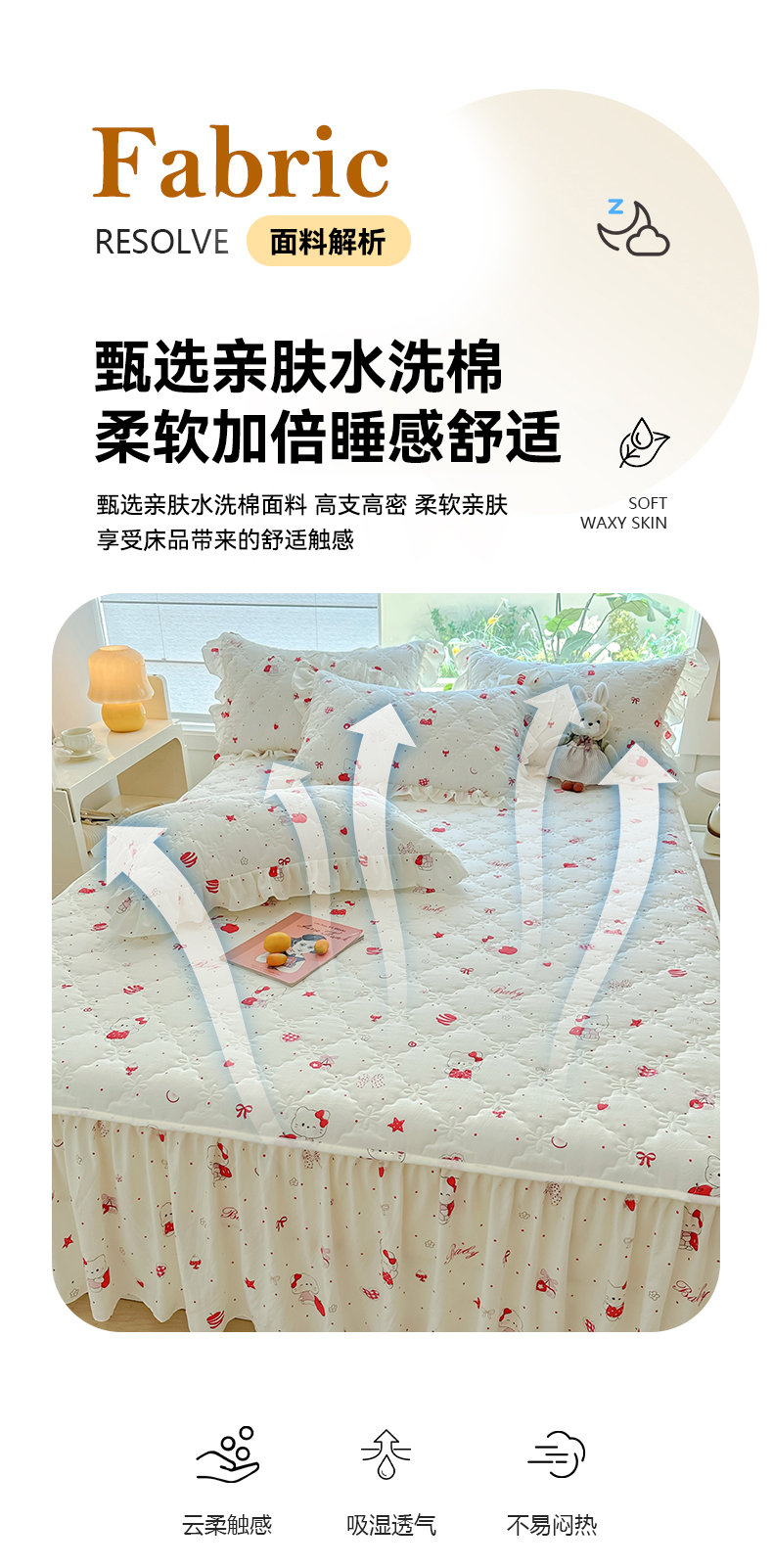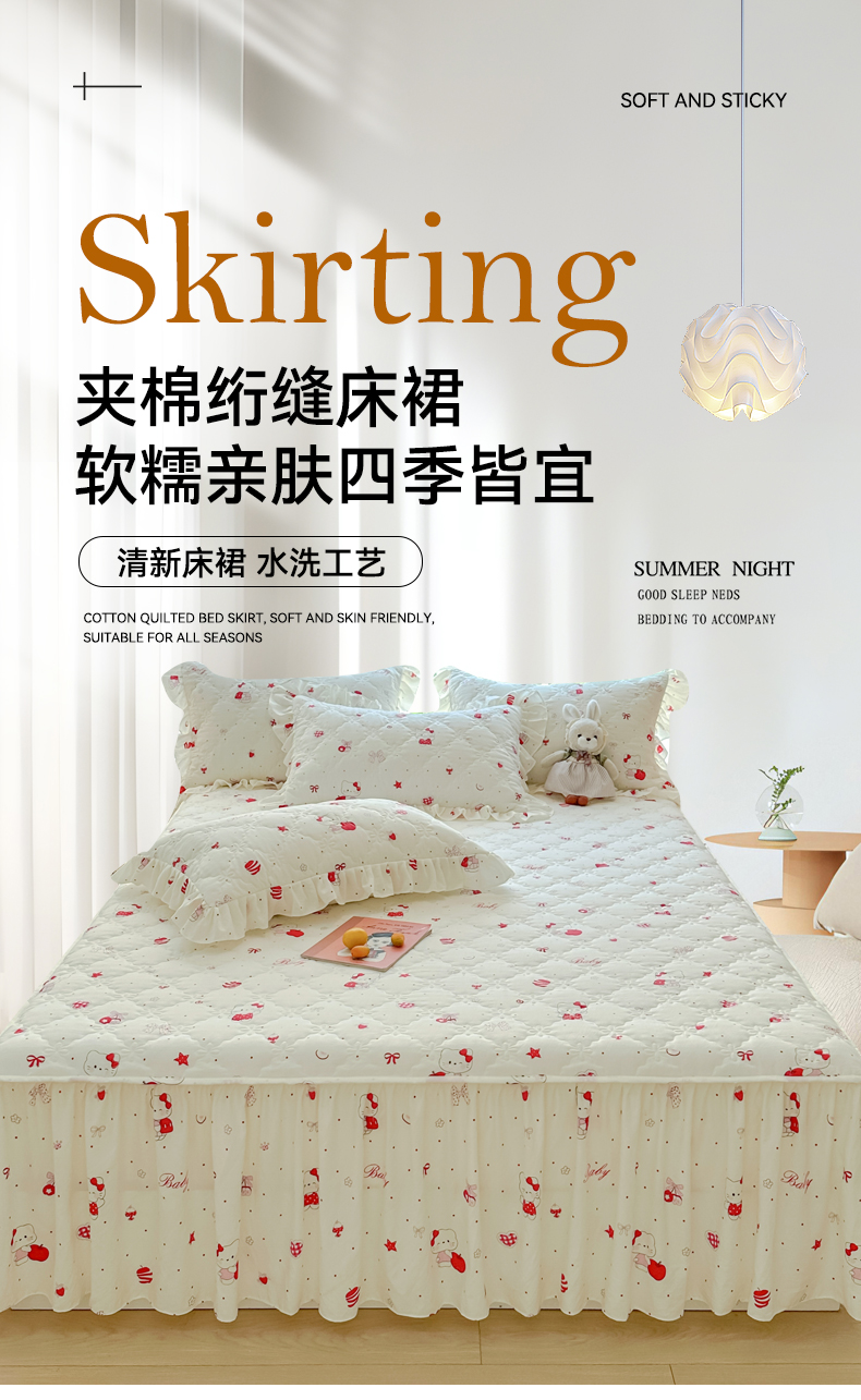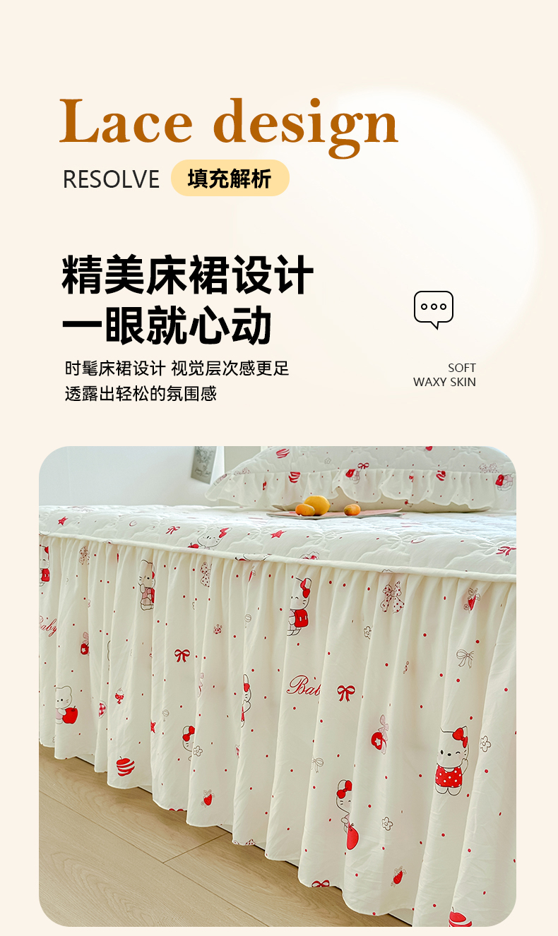 • 91家纺网 家纺一手货源 找家纺 忘忧草 2025新款亲肤水洗棉夹棉床裙--小清新系列 开心喵