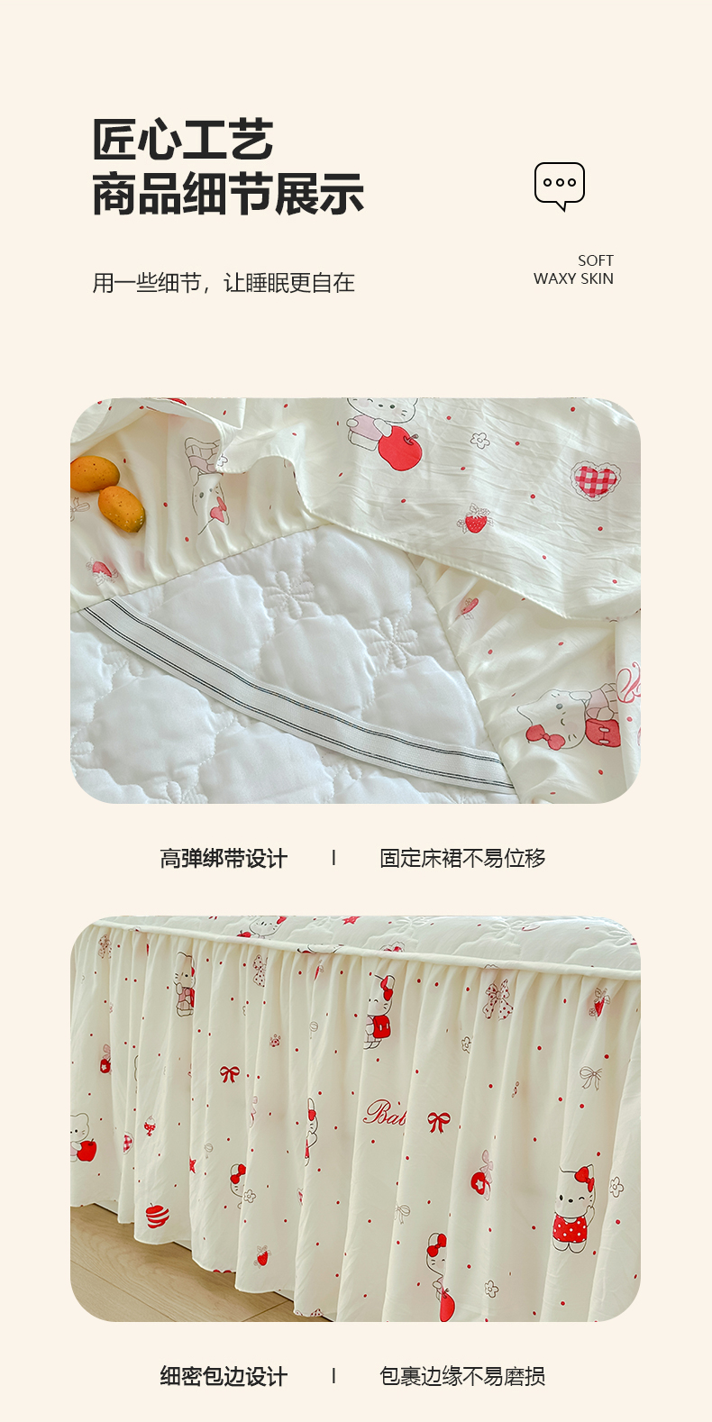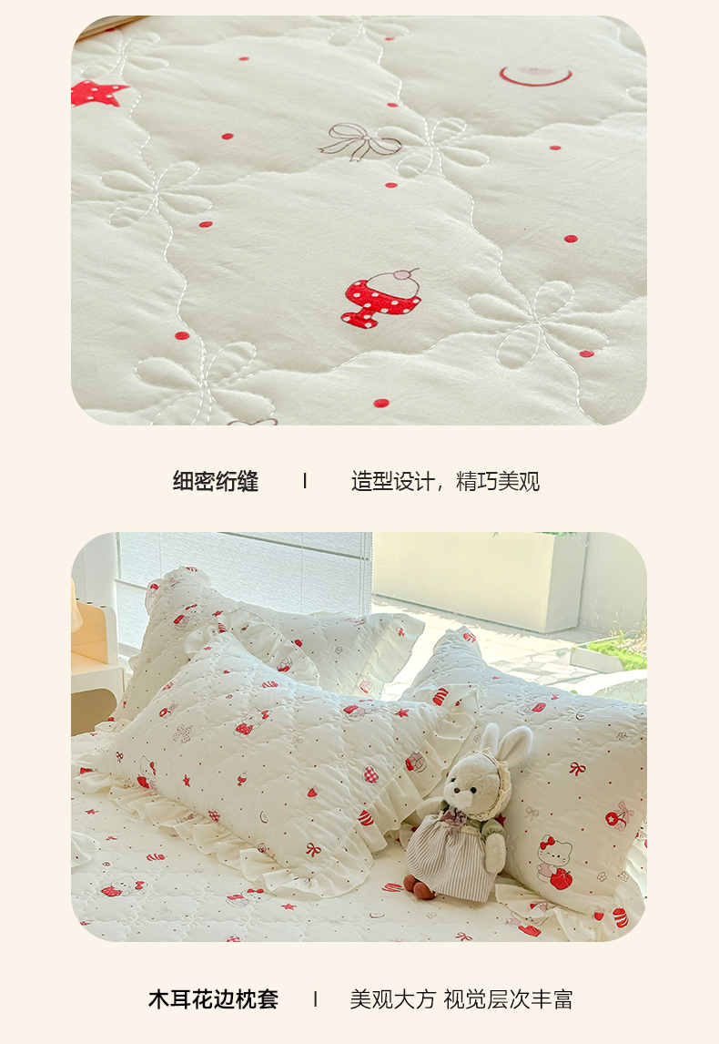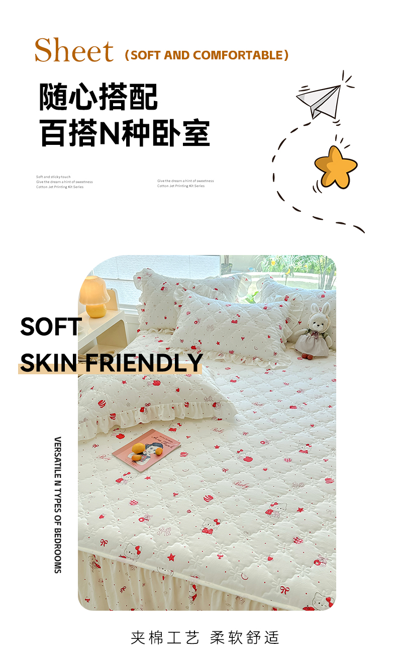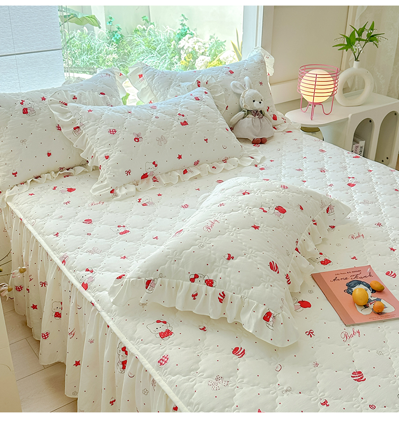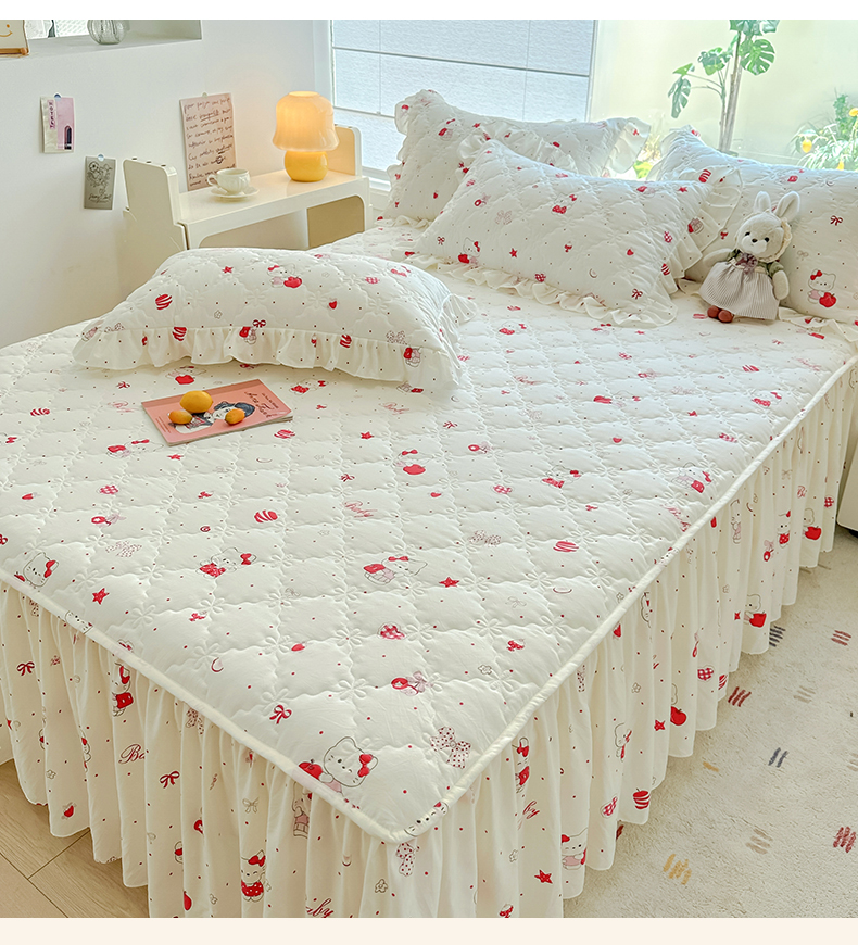 忘忧草 2025新款亲肤水洗棉夹棉床裙--小清新系列 开心喵