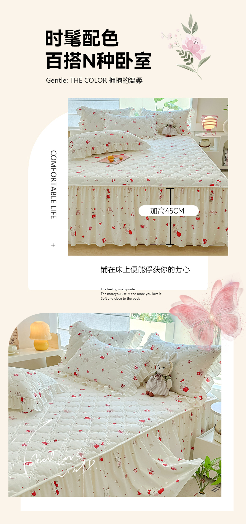 (总)忘忧草 2025新款亲肤水洗棉夹棉床裙--小清新系列,甜蜜草莓,畅想花海,丛林觅兔,开心喵,蓝萱,绿野仙踪,郁金香,茶艺师,陌上花开,安娜花园,蝴蝶结,心动兔兔,蝶恋花