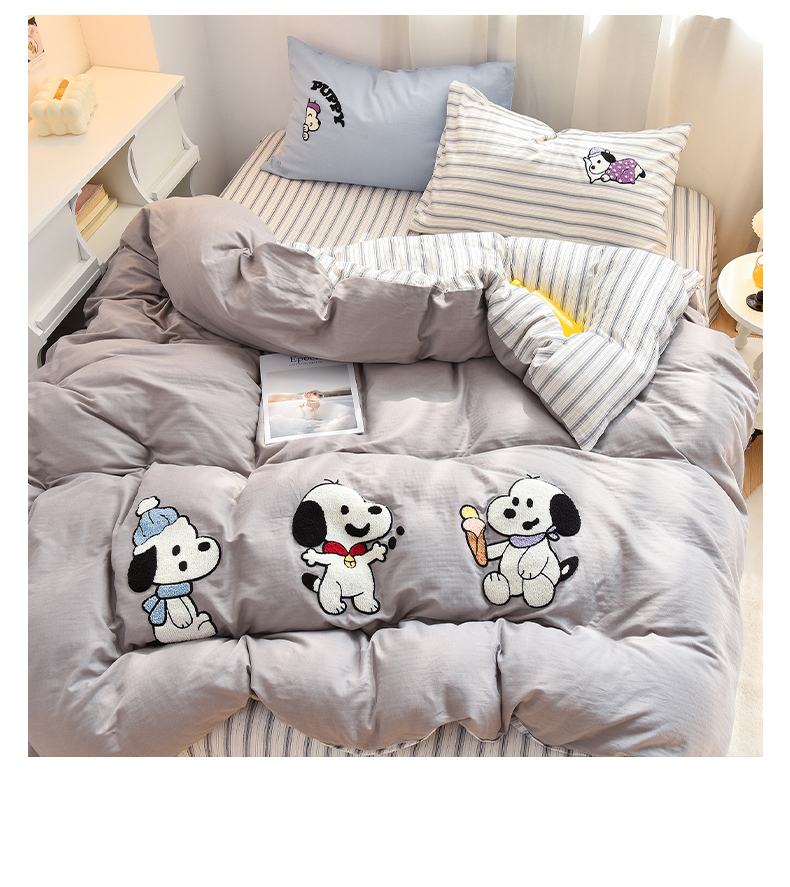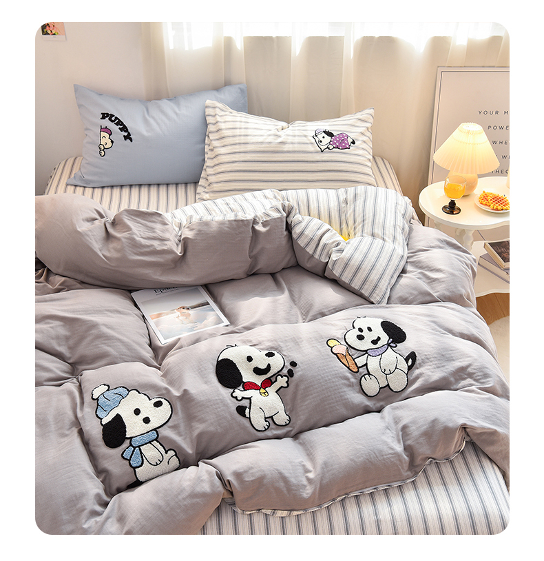 当前位置: 91家纺网 > 商品网购 > 床品套件 > 四件套 > 毛巾绣四件套 > 炫拼家纺 2025新款泡芙系全棉纯棉A类40支双层纱卡通毛巾绣四件套 小狗派对