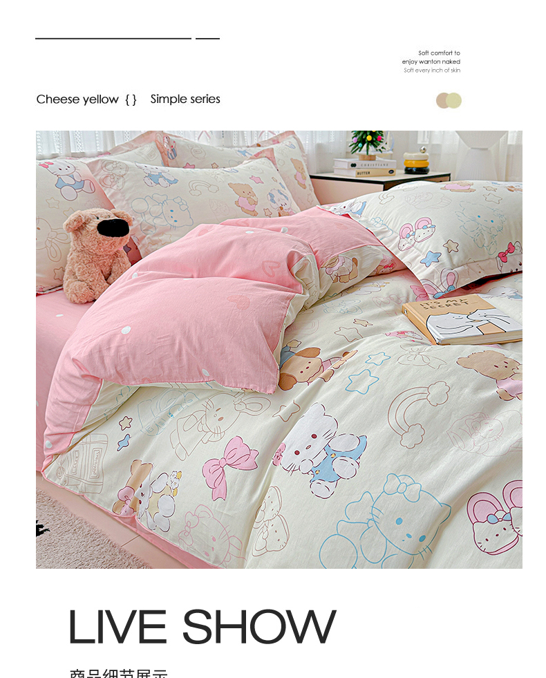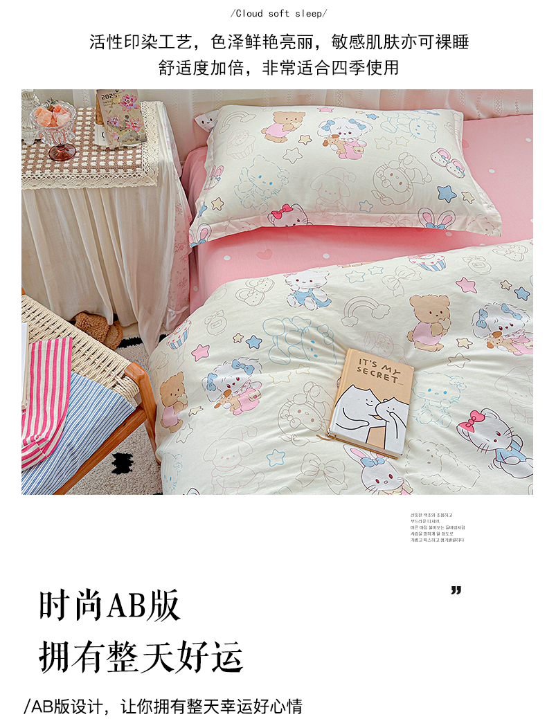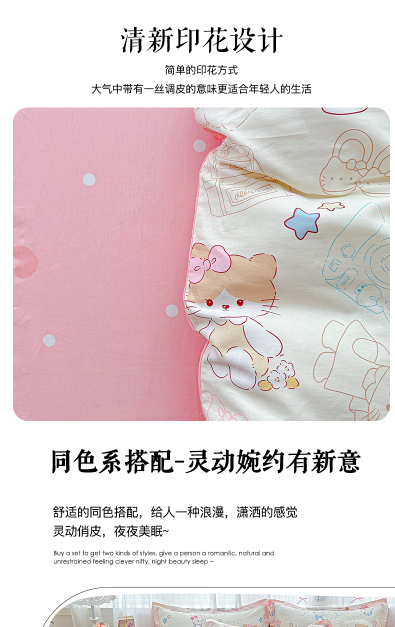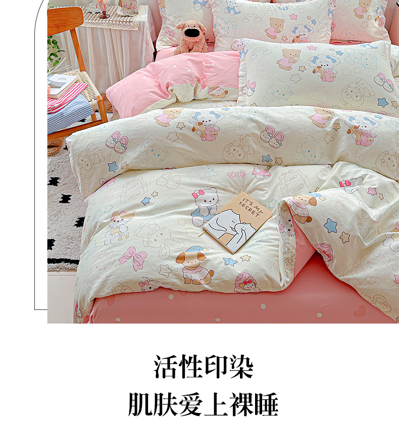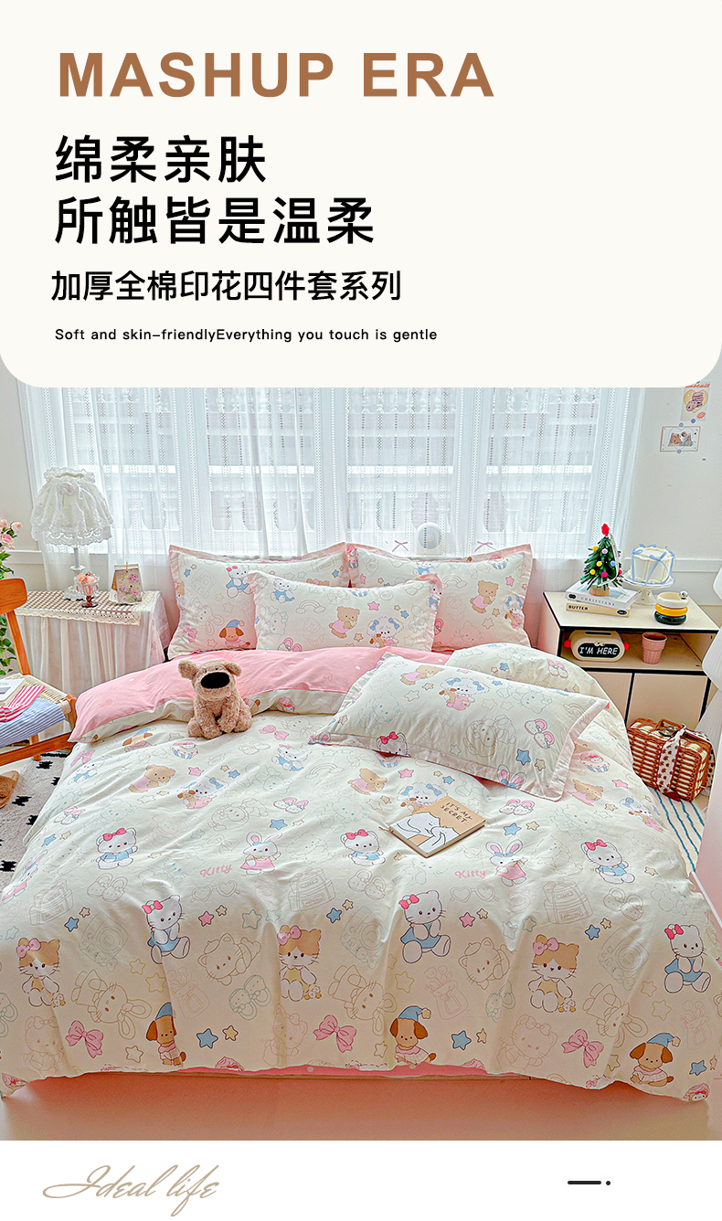 当前位置: 91家纺网 > 商品网购 > 床品套件 > 四件套 > 全棉普通四件套 > 恩泽家纺 2025新款全棉纯棉12868喷气印花系列四件套-第二批 凯蒂宝贝