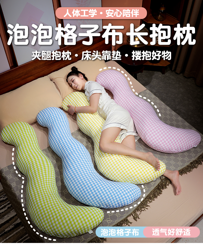 商品名称:(总)仟亿莱 2025新款泡泡格子月牙长条抱枕枕头枕芯-格子月牙
