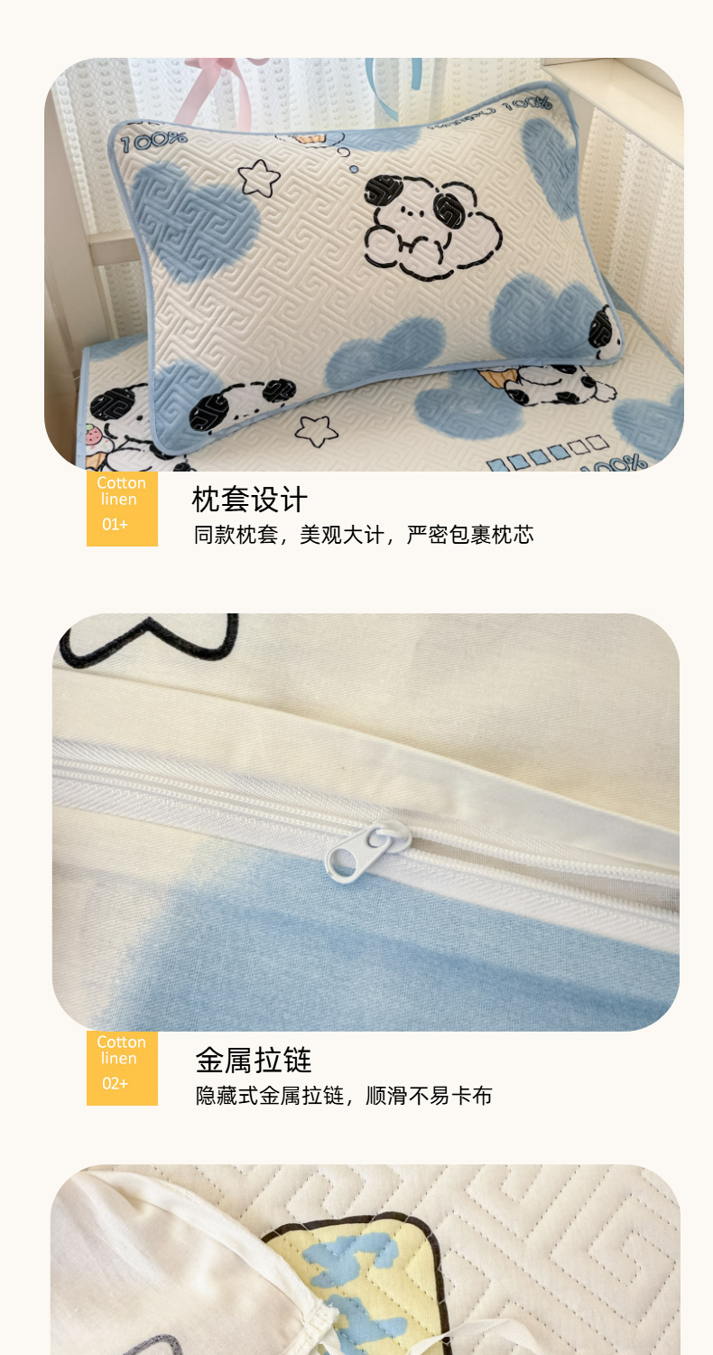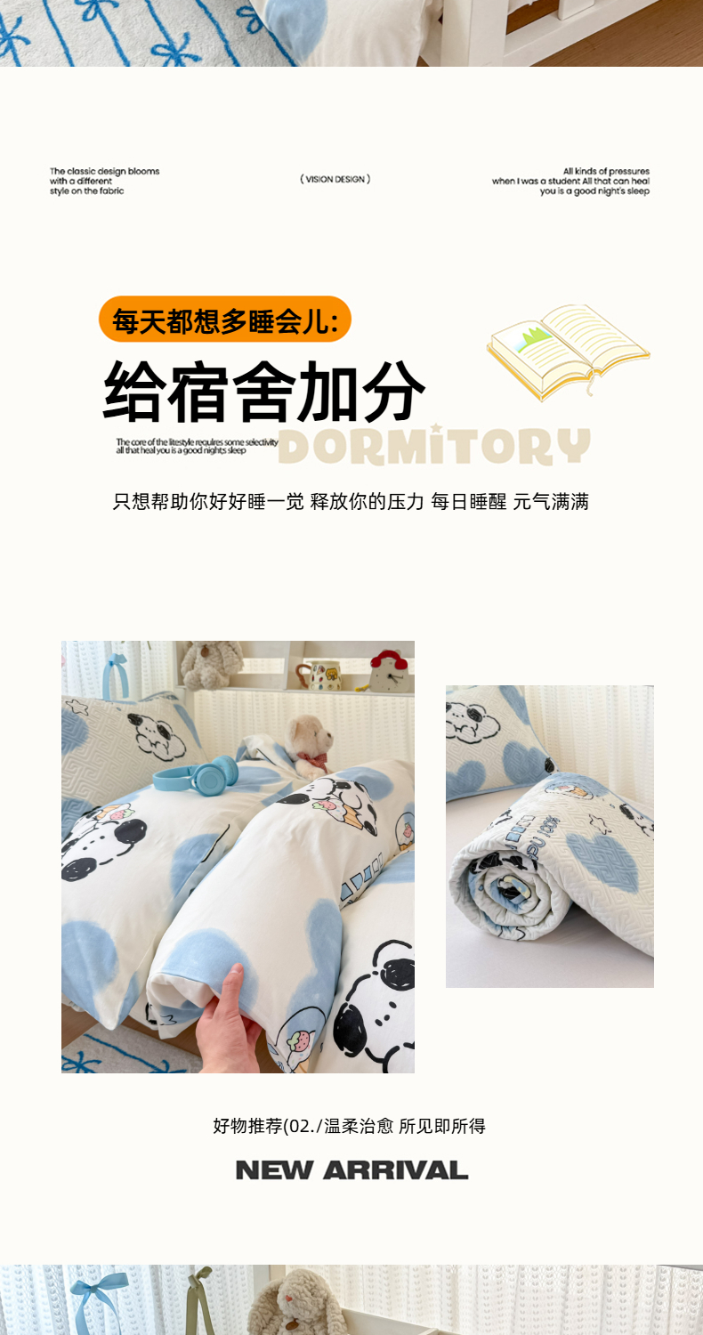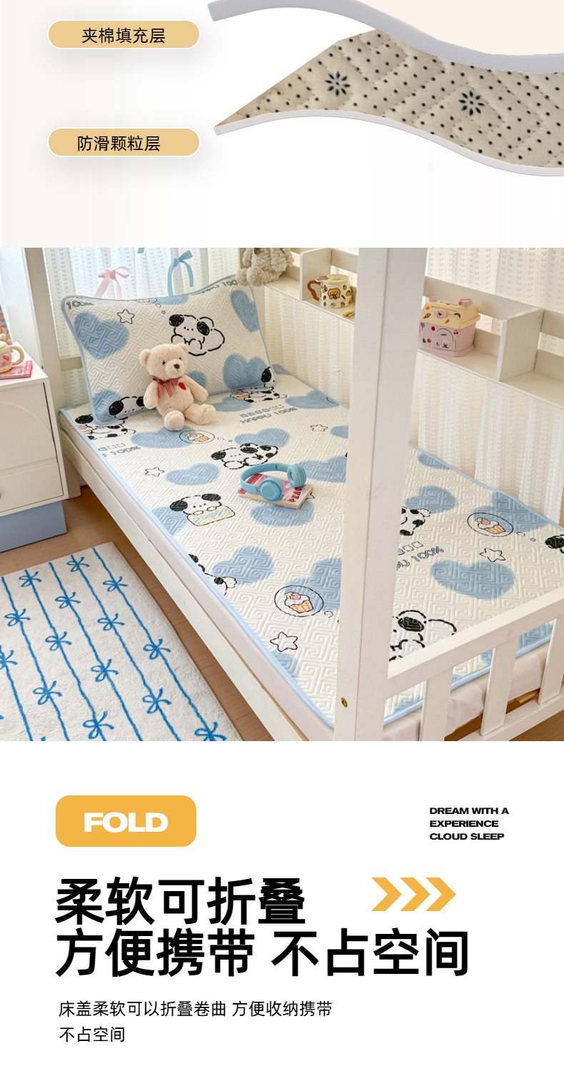 简宜家居(朝初家纺) 2025新款纯棉夹棉床盖学生三件套 萌萌狗 -平铺床盖