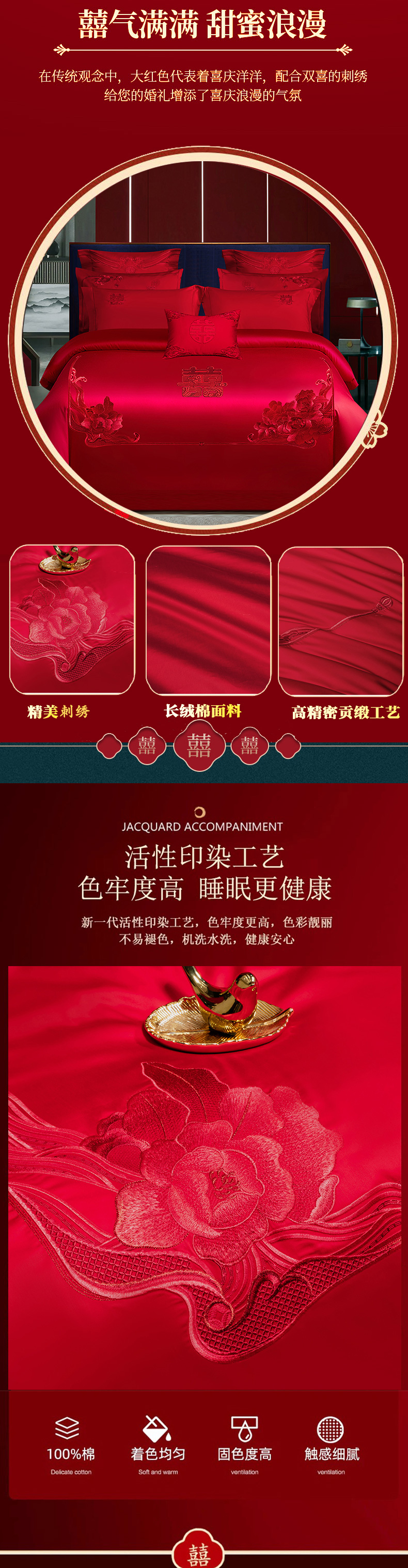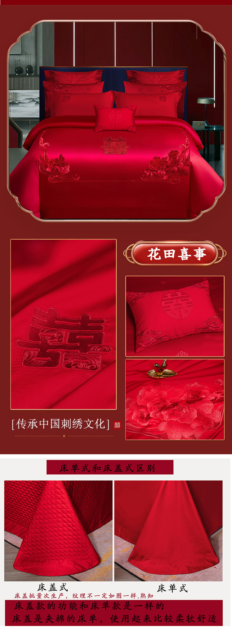 当前位置: 91家纺网 > 商品网购 > 床品套件 > 四件套 > 婚庆四件套 > 柏拉图 2025新款100s贡缎长绒棉提花婚庆系列四件套多件套 花田喜事-红
