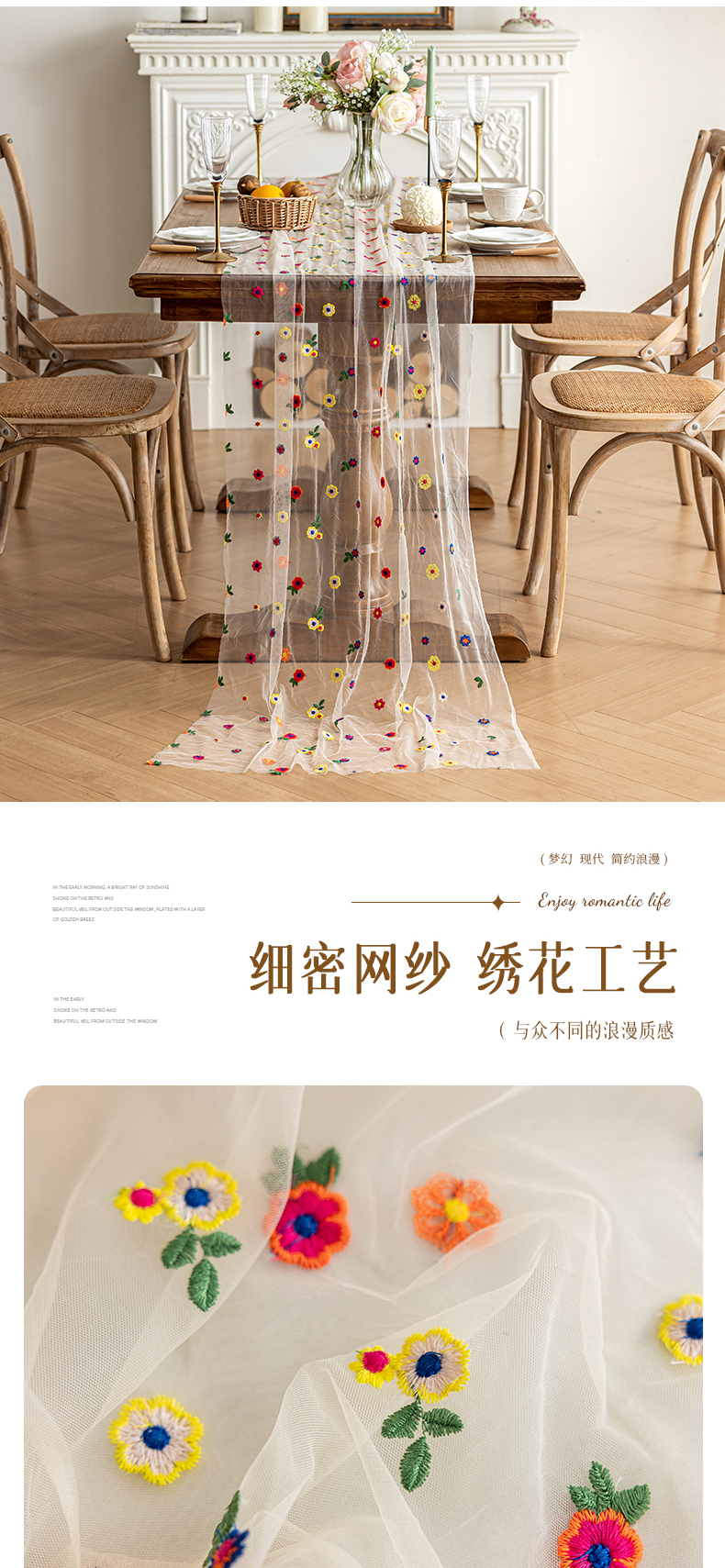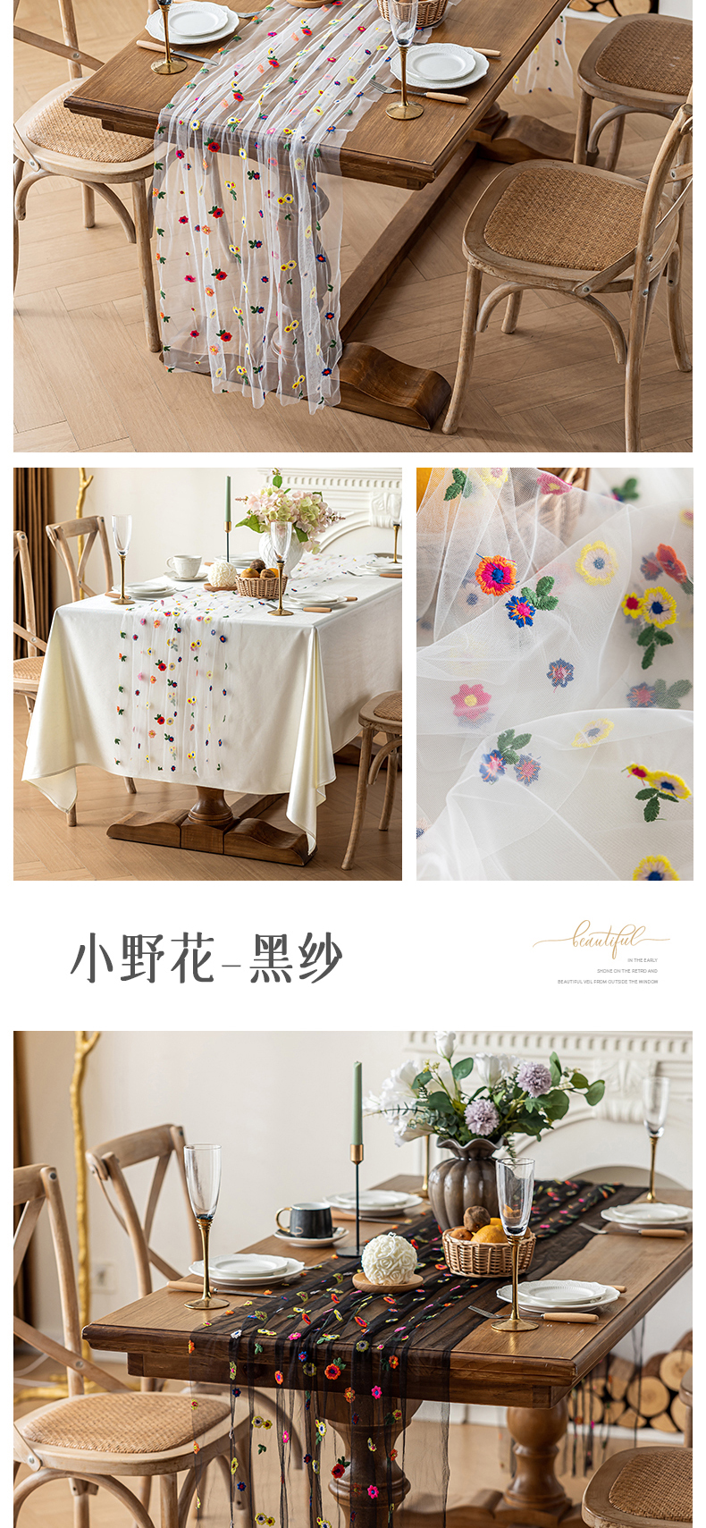 当前位置: 91家纺网 > 商品网购 > 床品定制 > 桌布/桌旗定制定做 > 南通大梧纺织 2025新款网纱绣花法式复古风小野花桌旗 小野花-白纱 定制宽70cm内50件/米