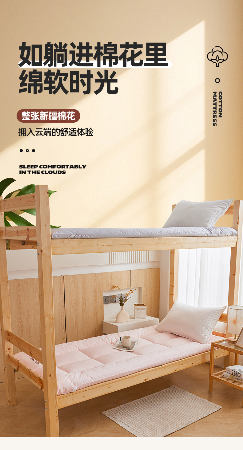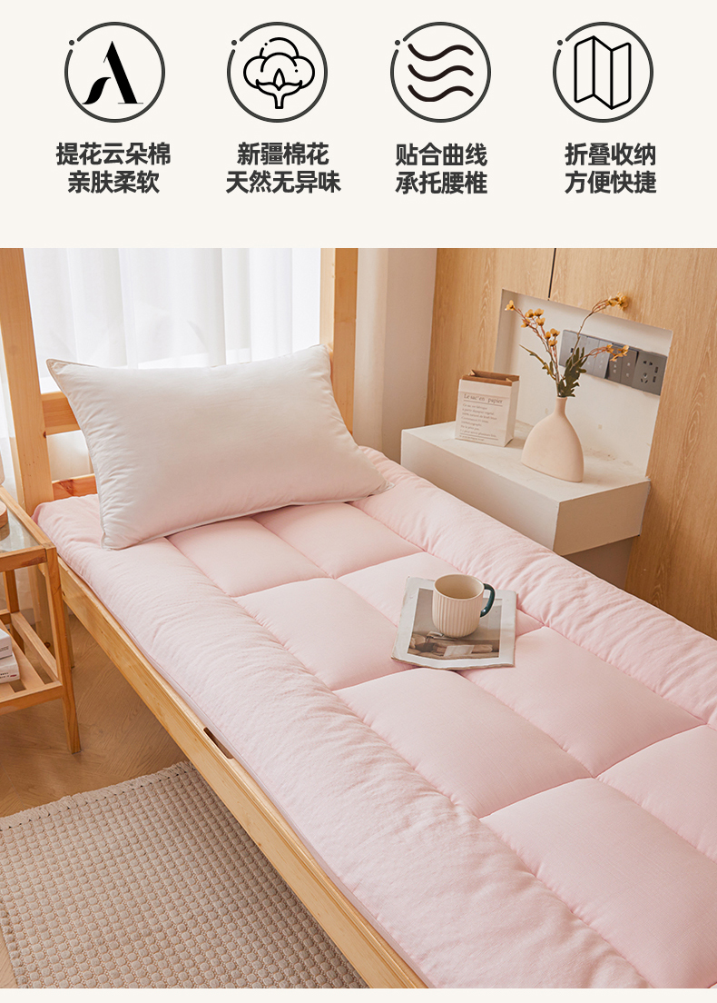 当前位置: 91家纺网 > 商品网购 > 床垫/床褥 > 普通床垫 > 梵蒂莎 2025新款纯色烫画棉花床垫学生款场景一 樱花粉