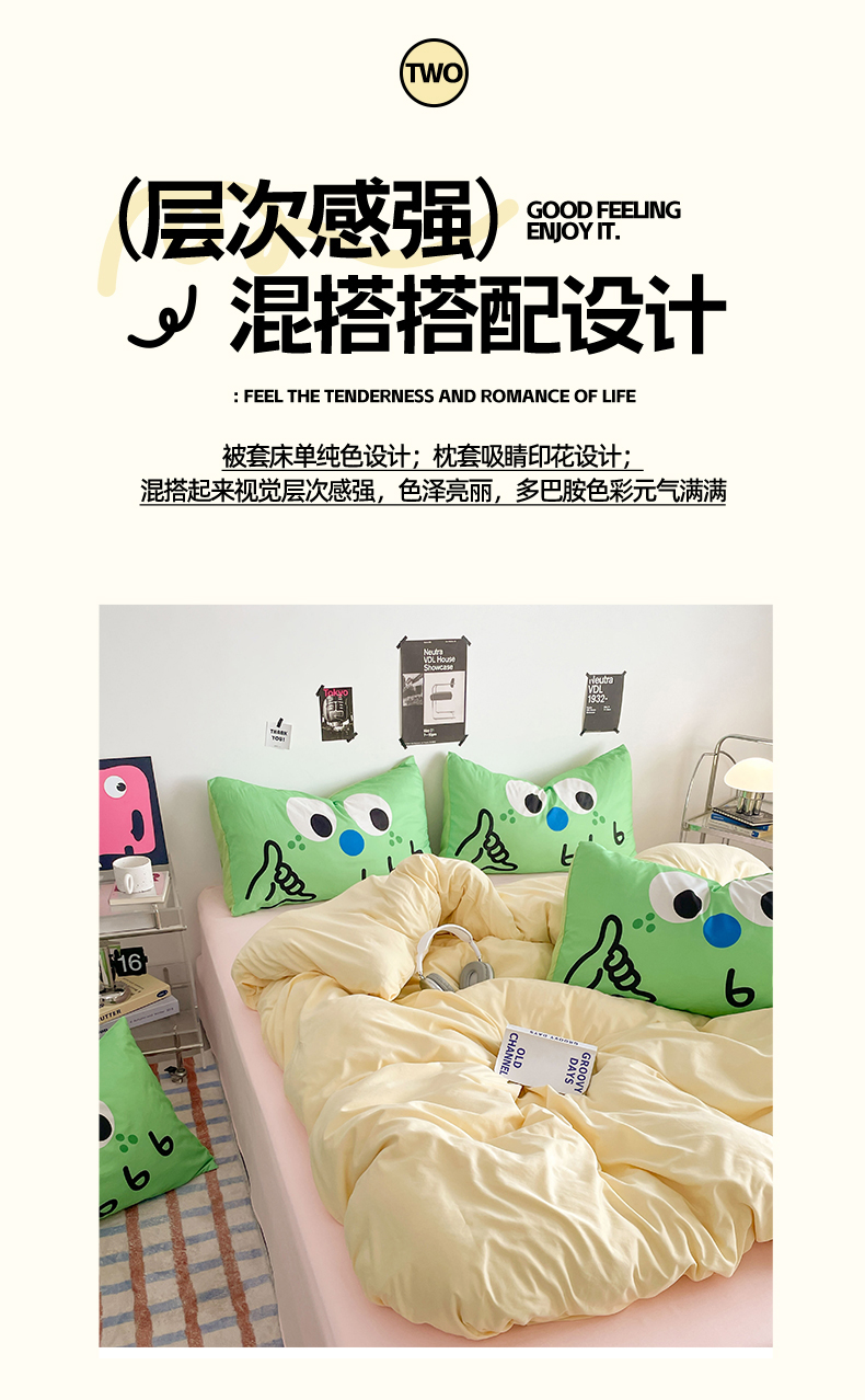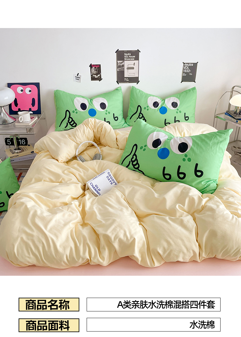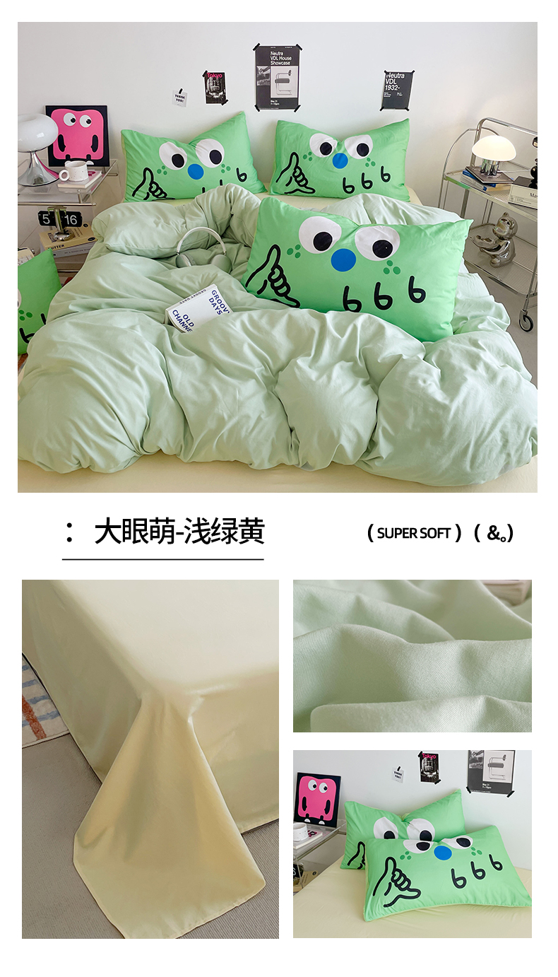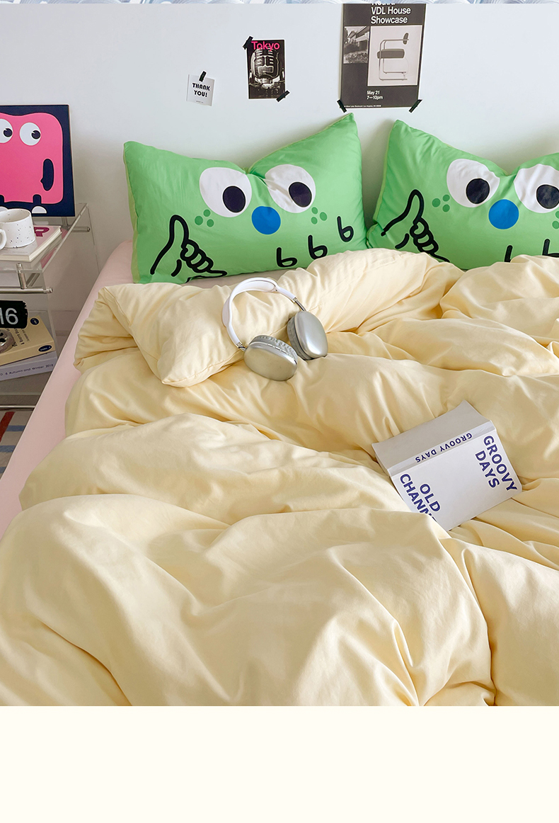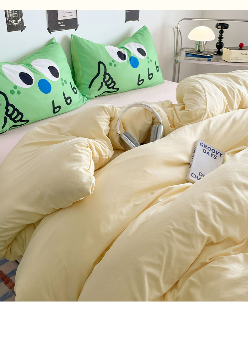 当前位置: 91家纺网 > 商品网购 > 床品套件 > 四件套 > 水洗棉四件套 > 优卡迪家纺馆 2025新款A类亲肤水洗棉大眼萌纯色混搭四件套 大眼萌-奶黄粉