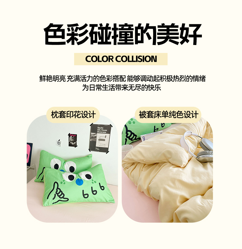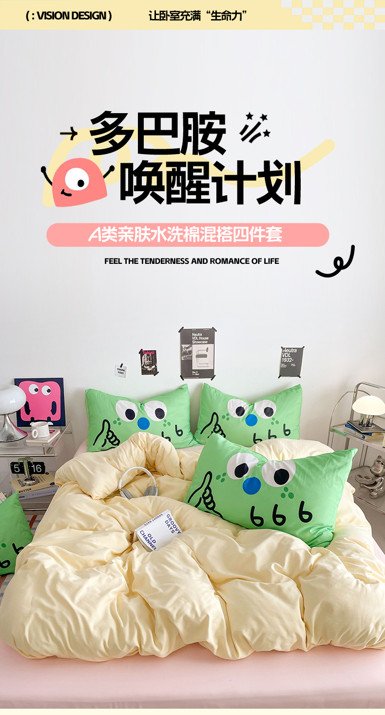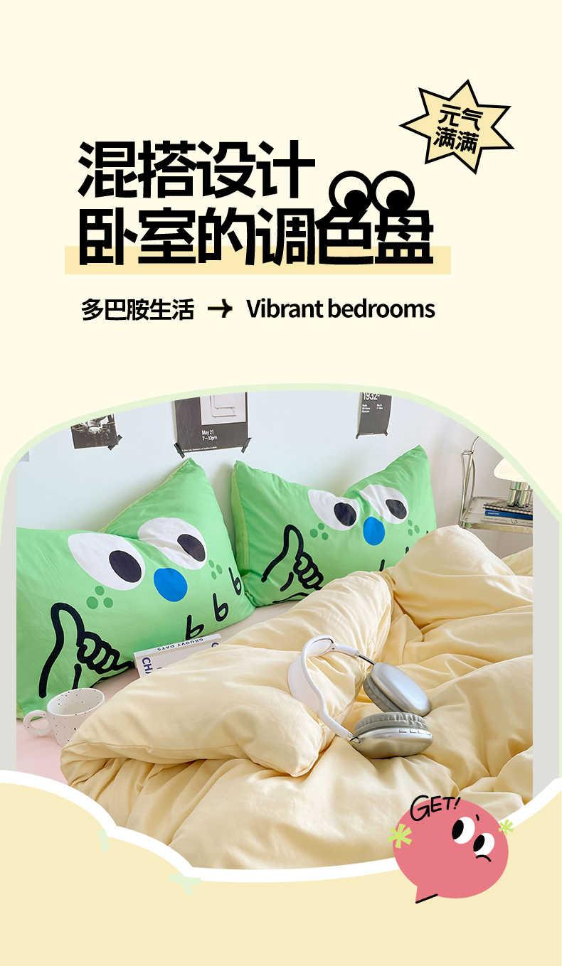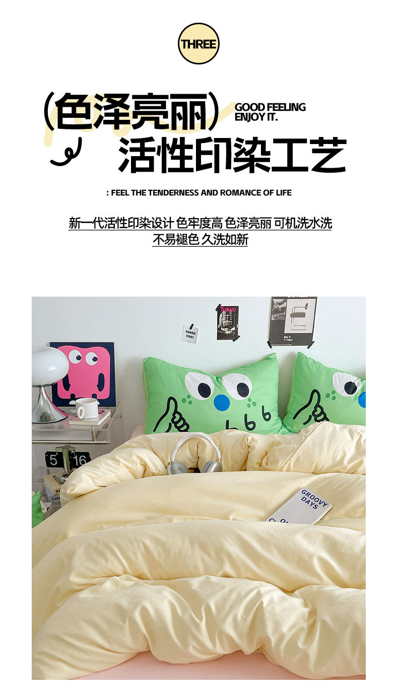 当前位置: 91家纺网 > 商品网购 > 床品套件 > 四件套 > 水洗棉四件套 > 优卡迪家纺馆 2025新款A类亲肤水洗棉大眼萌纯色混搭四件套 大眼萌-奶黄粉