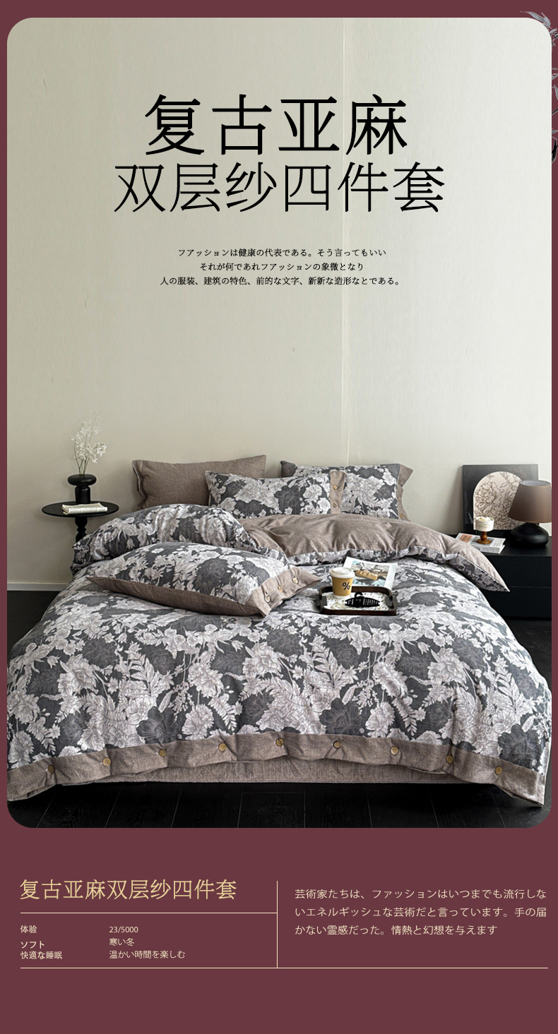 (总)漫仙阁家纺 2025新款秋冬新款复古风高端原麻四件套,组合图仅供参考,茶颜,春日来信,古奈绿,锦瑟,南城旧梦,秋意浓